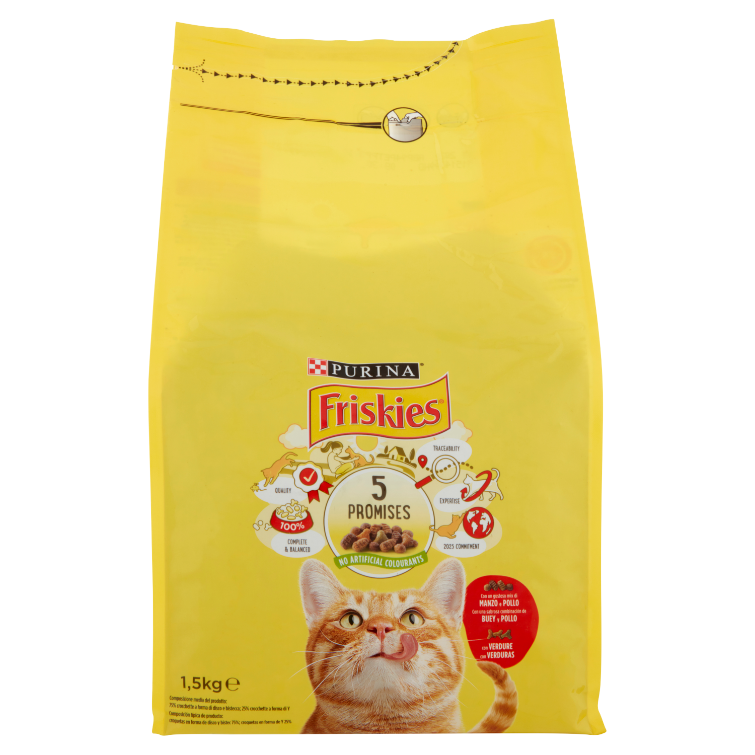 PURINA FRISKIES Gatto con un gustoso mix di Manzo e Pollo e con Verdure 1,5 kg