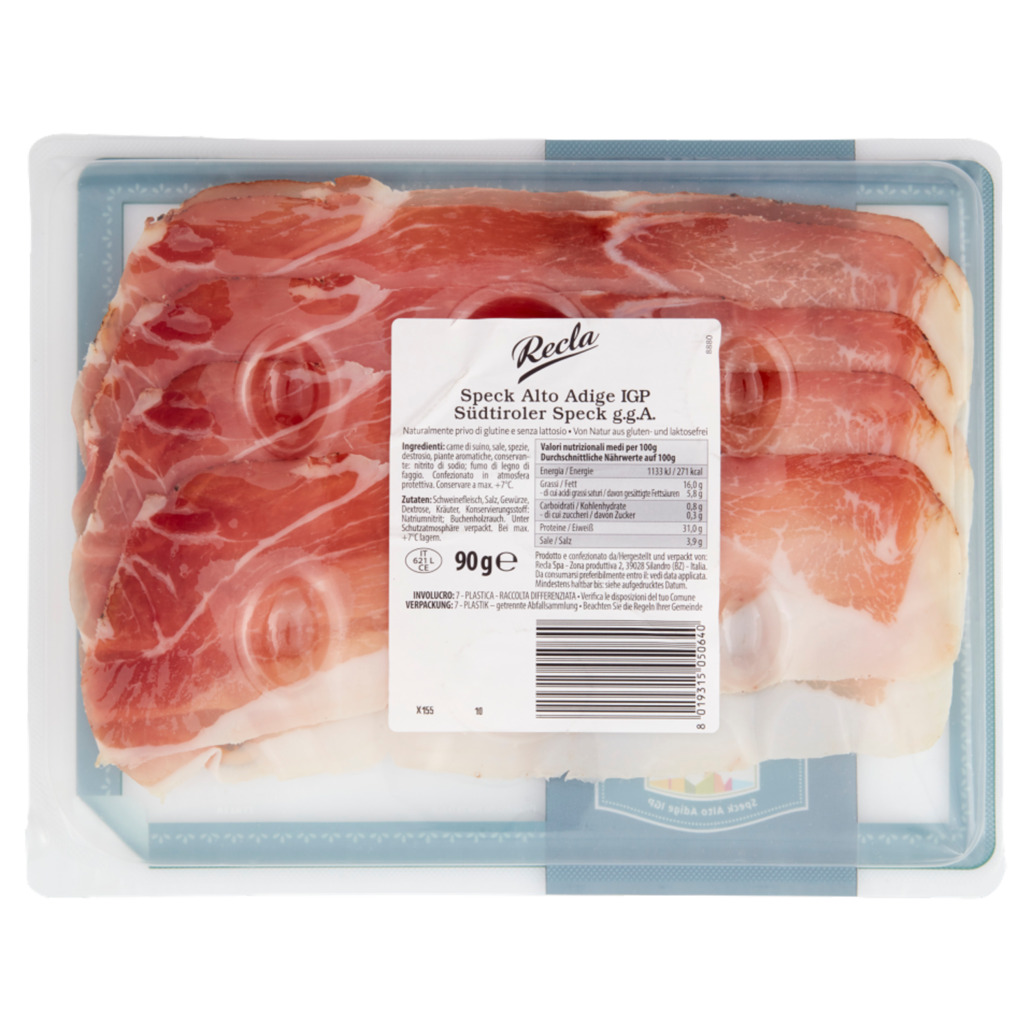 Speck Alto Adige IGP Naturalmente privo di glutine e senza lattosio