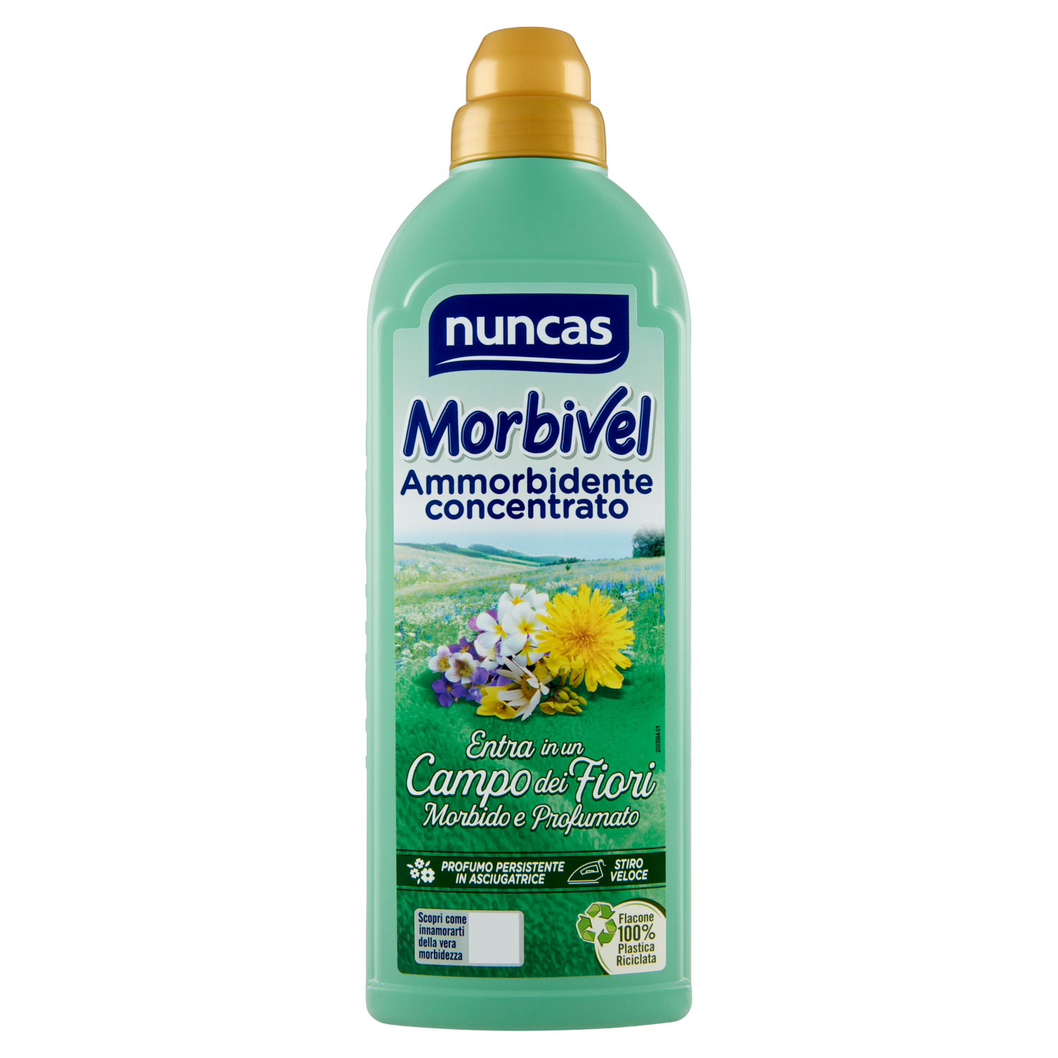 Lasciati trasportare dall'eleganza della violetta, dalla freschezza dei fuori d'arancio e della poesia del legno di sandalo in un incantevole Campo dei Fiori. Morbivel ridona ai capi la vera morbidezza e il soffice volume che hai sempre sognato. Ricco di principi attivi rigeneranti nutre e idrata le fibre in profondità; preserva i capi dall'usura e dall'irrigidimento dovuto al deposito del calcare. Ideale su tutti i tessuti, in particolare su cotone, lino e viscosa, distende le fibre per facilitare la stiratura e consentire un risparmio di tempo ed energie. Il profumo Selezione Nuncas, unico ed esclusivo, rimane nel tempo sui capi e resiste anche al trattamento in asciugatrice, evitando l'odore di umido. Morbivel, inoltre, non lascia residui e contribuisce così a mantenere l'efficienza dell'elettrodomestico. Nuncas green living La plastica è una risorsa importante dalle molteplici virtù (leggerezza, resistenza, longevità) e non deve essere sprecata. Ecco perché questo flacone è realizzato al 100% con plastica riciclata, rigenerata e riutilizzata: per trasformare un rifiuto in una risorsa. Anche l'energia elettrica usata da Nuncas per la realizzazione di questo prodotto proviene solo da fonti rinnovabili certificate, per un uso più sostenibile delle risorse energetiche. Inquadra il QR code per conoscere come smaltire l'imballaggio nel rispetto dell'ambiente.