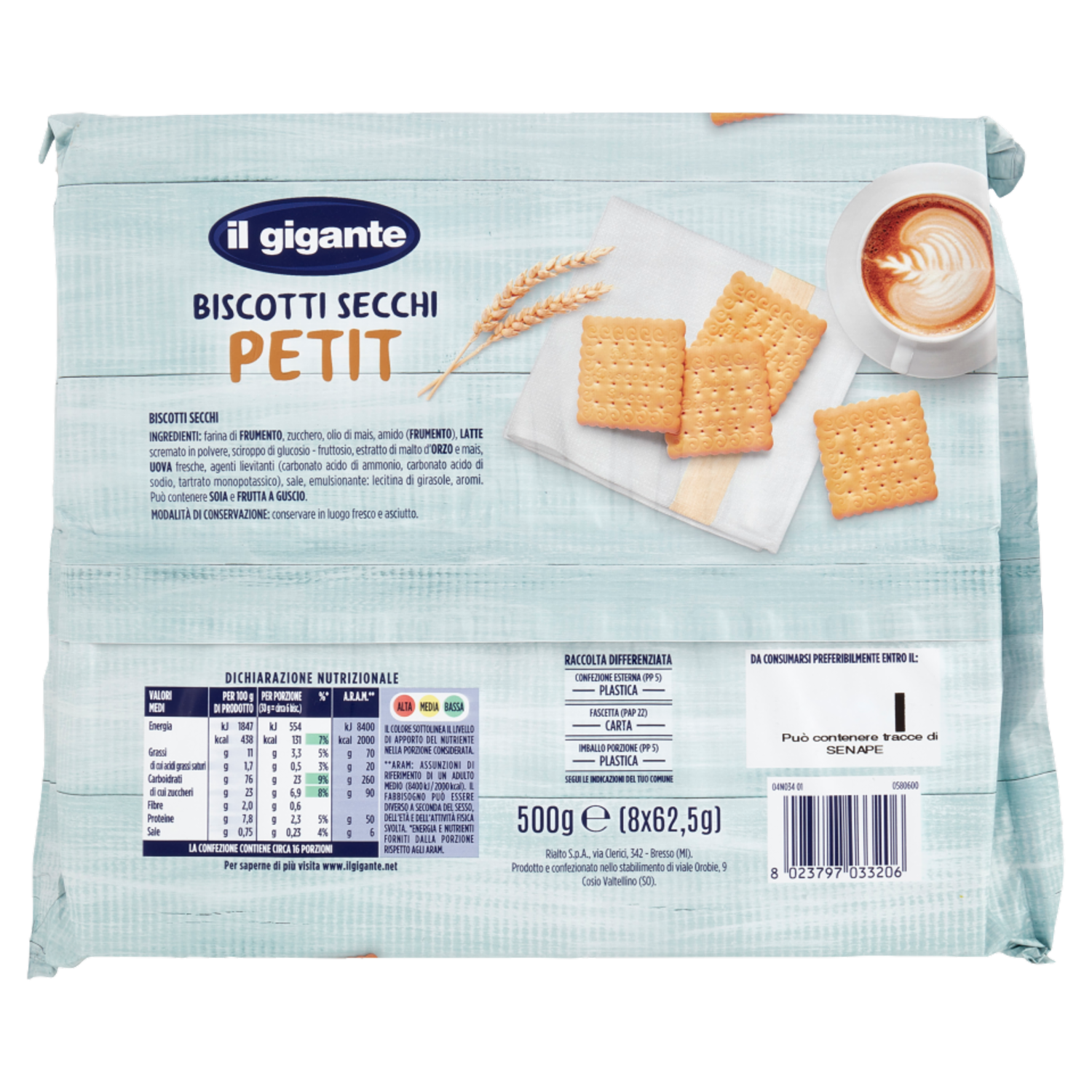 Rialto S.p.A. via Clerici, 342 Bresso (MI) Prodotto e confezionato nello stabilimento di viale Orobie, 9 Cosio Valtellino (SO)