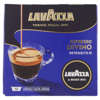 CAFFE' IN CAPSULE - ESPRESSO DIVINO Confezione da: 12 capsule monodose Lavazza A Modo Mio Intensità: 11/13 (Molto intenso) Composizione: Arabica e robusta Gusto: vellutato, raffinato e cioccolatato Note aromatiche: frutta esotica e cacao Tostatura: scura La capsula autoprotetta e confezionata sottovuoto preserva l'aroma La miscela è selezionata, tostata e macinata ad arte La pressatura del caffè è perfetta come al bar La quantità di caffè fino a 7,5 g è ideale per un espresso La pressione ottimale dell'acqua (fino a 15 atm) conferisce cremosità L'estrazione lenta (25-30"") esalta al massimo i sapori Capsule originali Lavazza per Macchine Espresso Lavazza A Modo Mio A Casa come al Bar Con le capsule caffè Lavazza A Modo Mio puoi preparare in poco tempo un vero espresso italiano a casa tua con la stessa qualità del bar. Lavazza seleziona attentamente miscele ed aromi ed è per questo che la gamma di capsule di caffè A Modo Mio ti permette di trovare, in base alle tue preferenze di intensità e tostatura, la capsula più indicata per estrarre un espresso che più soddisfi i tuoi gusti. Ogni capsula di caffè Lavazza A Modo Mio è monodose e contiene fino a 7,5 grammi di caffè macinato conservato sottovuoto per mantenerne intatta la qualità. Le capsule caffè Lavazza funzionano su tutte le macchine da caffè Lavazza A Modo Mio, come Tiny, Jolie, Idola e la nuova Deséa.