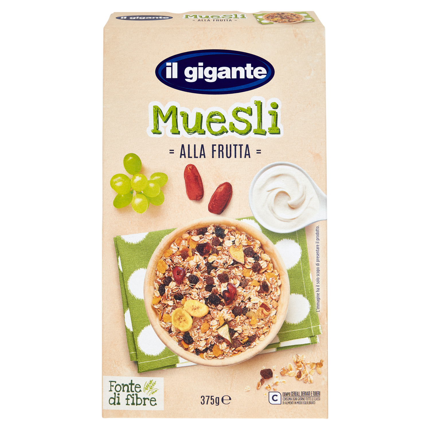 Modalità di preparazione Il Muesli alla Frutta Il Gigante è ideale per la tua colazione: unisci 3 o 4 cucchiai di Muesli al latte freddo o caldo o allo yogurt per apprezzare la croccantezza dei cereali.
