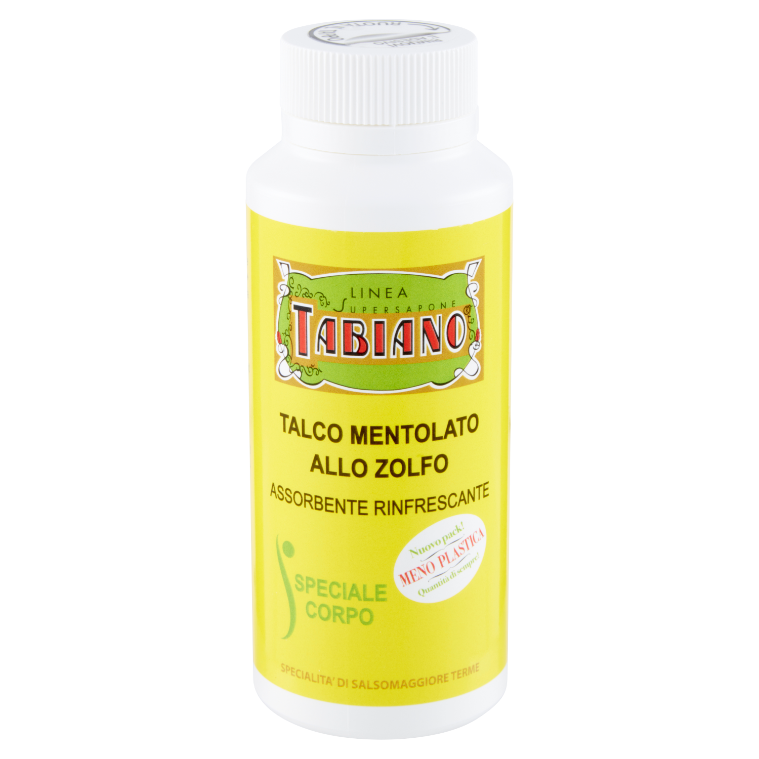 Talco mentolato allo zolfo Talco mentolato altamente assorbente e rinfrescante, la combinazione Mentolo + Zolfo assicura una migliore igiene della pelle.