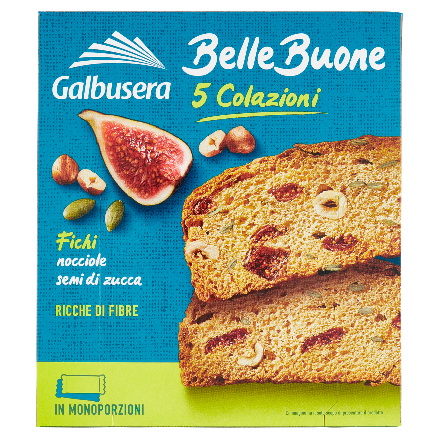 Le fette spesse per 5 Colazioni Belle, da gustare con gli occhi, prima ancora di assaporarle. Buone, perchè fatte con ingredienti genuini e di qualità. Dal gusto intenso e dalle consistenze diverse grazie all'impiego di farine poco raffinate e alle inclusioni di frutta intera o in pezzi e semi. Nuovo Pack -22% di Carta Il percorso salute Galbusera Garantiamo sempre Ricette studiate per un'alimentazione equilibrata. Oli e Grassi non Idrogenati, Alta Qualità Materie Prime, Farina di Tipo 2 poco raffinata. Olio di girasole alto oleico. Sale marino integrale. No ogm, olio di palma, conservanti e coloranti. Ricche di grassi insaturi La sostituzione nella dieta dei grassi saturi con grassi insaturi contribuisce al mantenimento di livelli normali di colesterolo nel sangue. Un'alimentazione equilibrata ed una corretta attività fisica ti aiutano ad avere una vita sana. La tua colazione completa 1 monoporzione di BelleBuone latte o yogurt frutta fresca Per approfondimenti sulla Colazione completa vedi galbusera.it