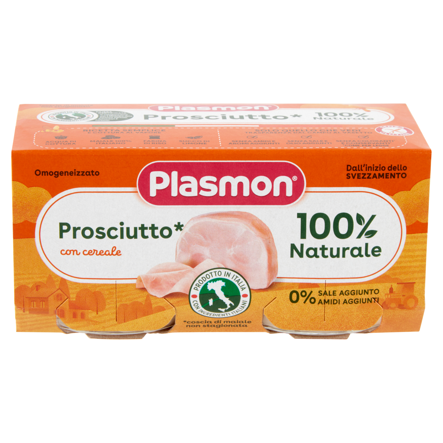 Alimento per l'infanzia omogeneizzato con prosciutto* e cereale A norma del D.P.R. n.128 del 7.4.99 *coscia di maiale non stagionata