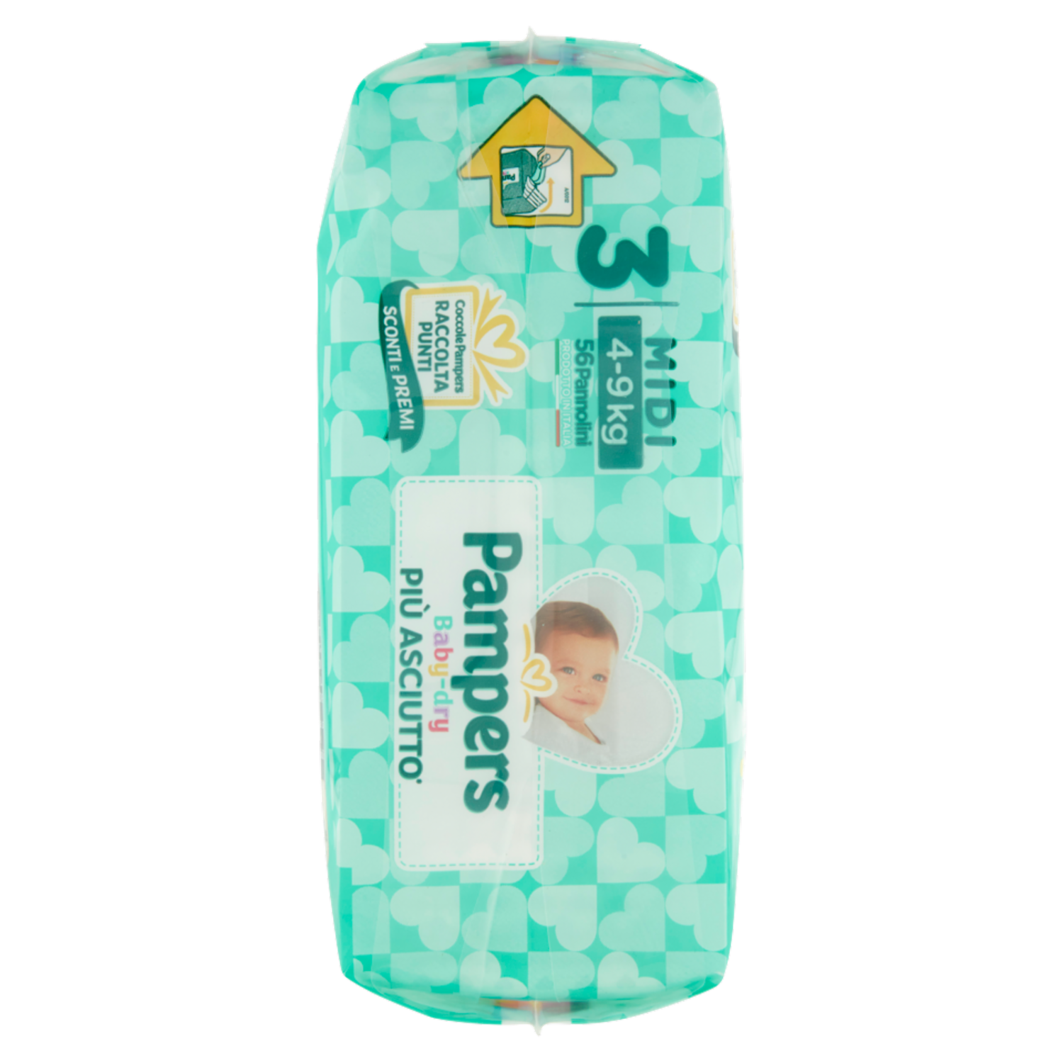 Prima che il tuo bimbo impari ad andare in bici ci impegniamo a ridurre di 5.000 tonnellate le emissioni di CO2 dei trasporti di tutti i nostri prodotti, pari alla CO2 assorbita in un anno da oltre 300.000 alberi. scopri l'impegno di Pampers e la sicurezza dei nostri prodotti su www.pampers.it/sostenibilità Pampers Con amore si cambia Pampers Baby-dry Più asciutto* Mini 3-6 Kg Midi 4-9 Kg Maxi 7-18 Kg Junior 11-25 Kg XL 15-30 Kg * Rispetto ai pannolini tradizionali di altre marche La linea Pampers Progressi con un prodotto specifico per ogni fase della crescita Nasce Micro: 1,5-2,5 kg Newborn: 2-5 kg Mini: 3-6 kg Midi: 4-9 kg Cresce Maxi: 7-18 kg Junior: 11-25 kg Corre Large: 13-27 kg XL: 16+ kg Pampers Baby-Dry Mutandino Prova la coccola di Pampers Baby-Dry Mutandino! Tutto l'asciutto di Baby-Dry, con la comoda fascia elastica avvolgente. Midi 6-11 Kg Maxi 8-15 Kg Junior 12-18 Kg XL 15+ Kg XXL 17+ Kg Pampers Progressi Mutandino La coccola Pampers più avvolgente e sicura con tutto l'asciutto e la protezione di Progressi. Midi 6-11 Kg Maxi 8-15 Kg Junior 12-18 Kg Extra large 15+ Kg Ad ogni cambio usa le salviettine Pampers Pulizia e protezione della pelle Delicata protezione per i primi mesi Per una pulizia pura ed essenziale Vuoi sapere di più sul codice Pampers? Vai su www.pampers.it