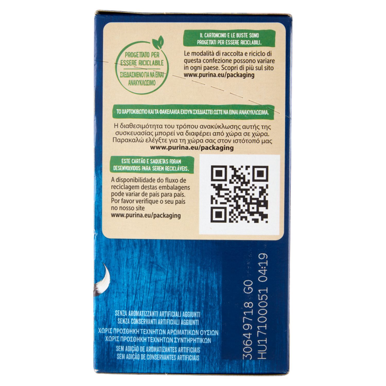 Modalità d'uso e razione giornaliera raccomandata: Per un gatto di 4kg, versare in una ciotola e servire una busta al giorno in abbinamento ad altri prodotti completi Purina. Per il benessere del tuo gatto, rispetta le linee guida di alimentazione. Servire a temperatura ambiente. Lasciare sempre a disposizione acqua fresca e pulita. Questo prodotto è un alimento complementare con un elevato contenuto di umidità, che permetterà al tuo gatto, mentre si nutre, di assumere parte della razione di acqua giornaliera raccomandata.