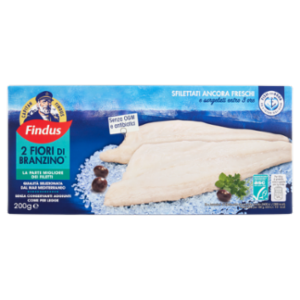 Come si preparano Il prodotto è da consumarsi previa cottura 8 Min - In padella: dopo aver eliminato l'involucro protettivo, disponi i Fiori di Branzino ancora surgelati in una padella antiaderente di dimensioni adeguate, preriscaldata con 1 cucchiaio di olio. Cuoci a fiamma medio/alta e con il coperchio per 8 minuti, avendo cura di girarli di tanto in tanto. 220°C - 15 Min - In forno: dopo aver eliminato l'involucro protettivo, disponi i Fiori di Branzino sul ripiano centrale su carta da forno con un po' d'olio, e cuocili in forno ventilato pre-riscaldato a 220°C (230°C se il forno è tradizionale) per 15 minuti. 8 Min - A vapore: dopo aver eliminato l'involucro protettivo, disponi i Fiori di Branzino nella tua vaporiera, e cuoci con coperchio per 8 minuti. Fai attenzione al vapore per non scottarti.
