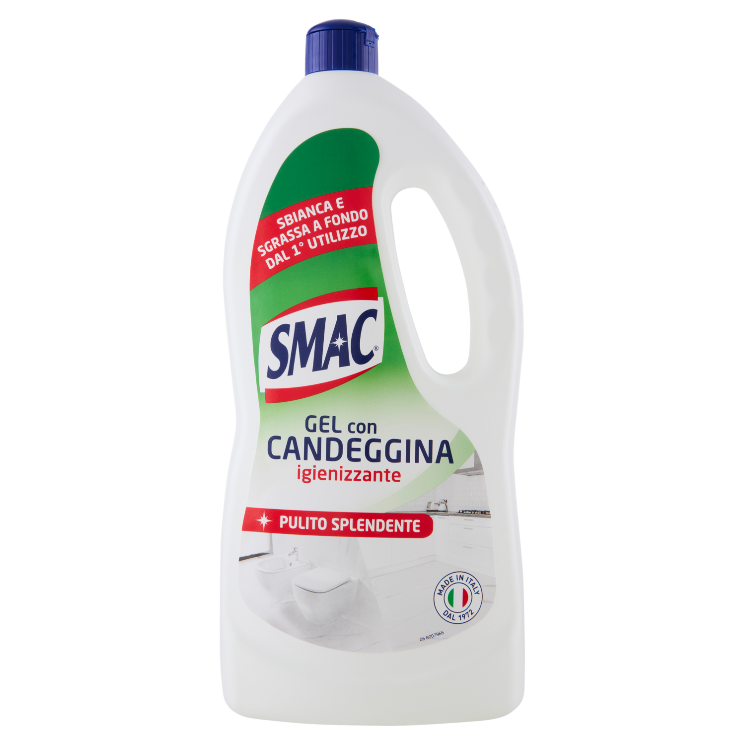 Smac gel con Candeggina sgrassa a fondo e igienizza, per una pulizia profonda della casa. Inoltre, la sua formula con agenti sbiancanti lascia le superfici brillanti fin dal 1° utilizzo.