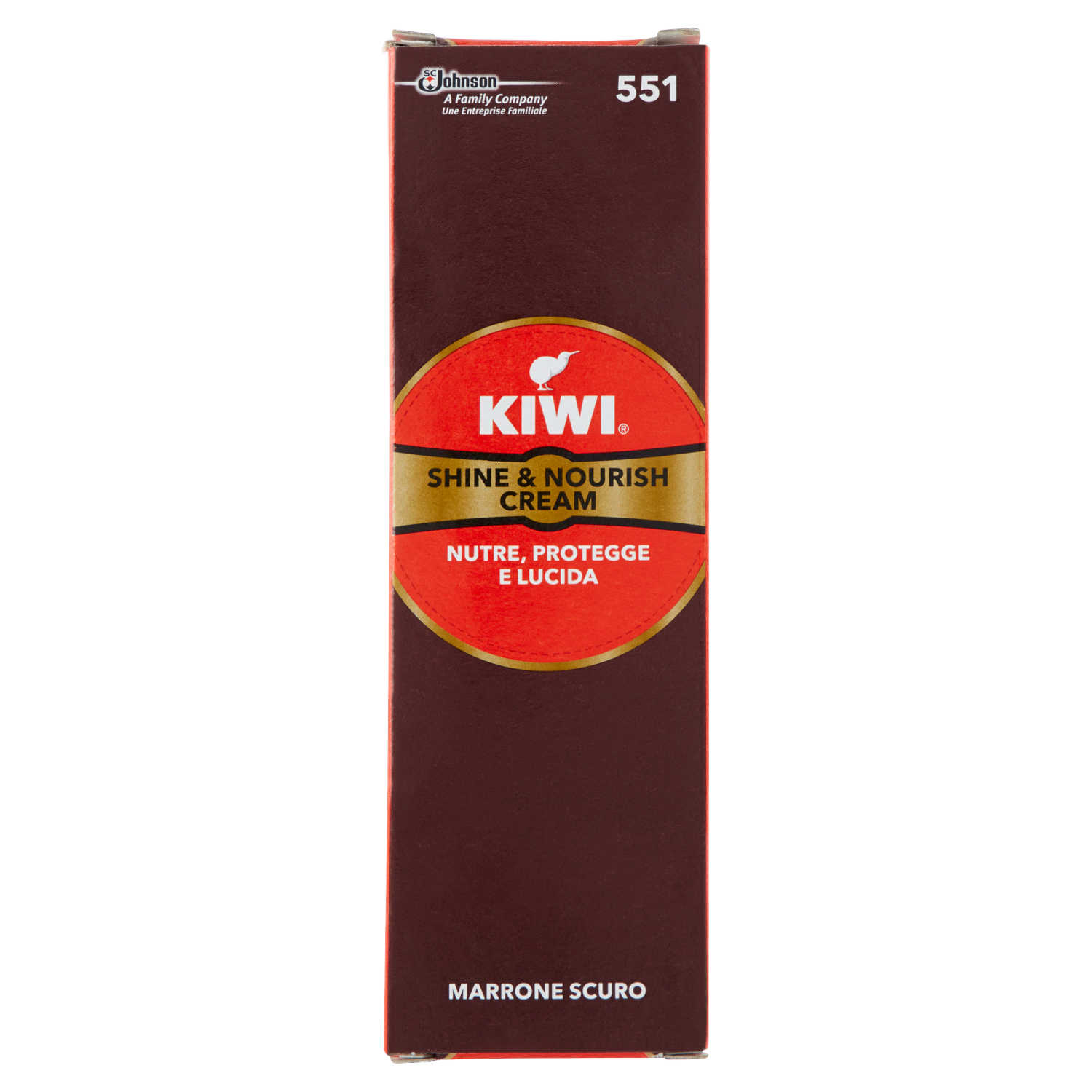 Kiwi Shine & Nourish Cream Marrone Scuro è una crema di alta qualità che nutre, protegge e lucida.