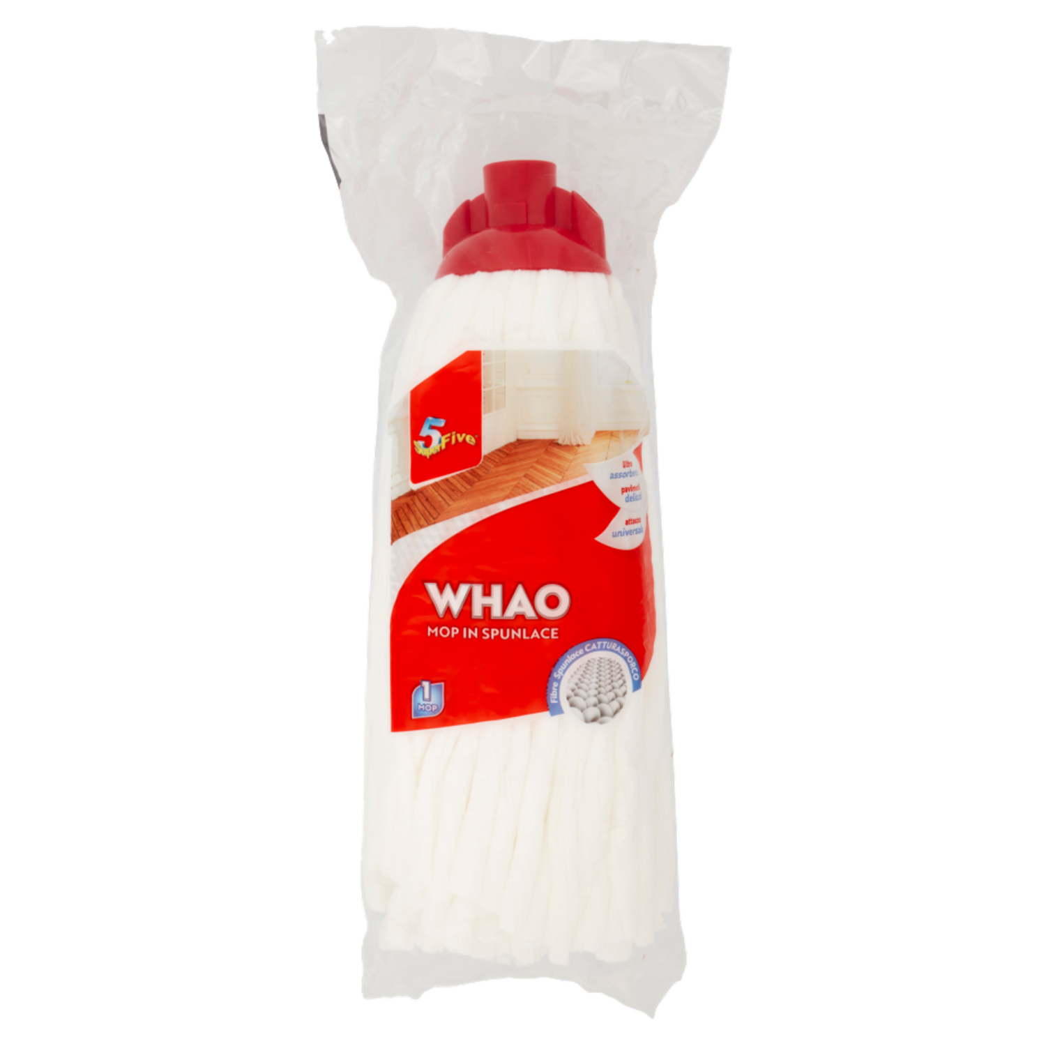 Universale Mop in spunlace perfetto per ogni tipo di pavimento, molto assorbente. Grazie alla speciale composizione delle sue frange in spunlace, Whao mop ha molta più capacità assorbente. Il detersivo viene così rilasciato in maniera uniforme su tutto il pavimento. Ideale per i pavimenti delicati come parquet e marmo. Lo spunlace è generato trattando le fibre con micro getti d'acqua. Si ottiene così un tessuto con ottime performances pulenti e allo stesso tempo delicato su tutte le superfici.