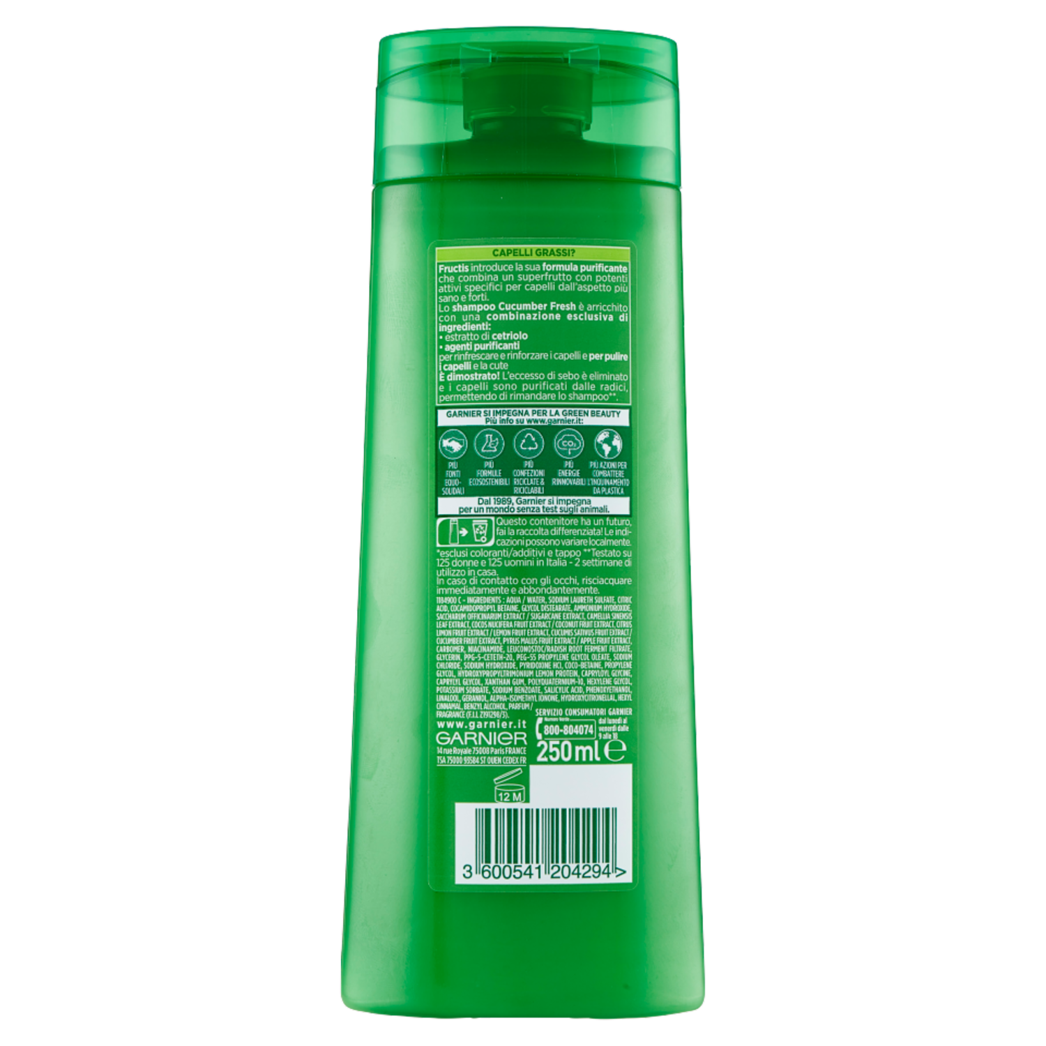 Per capelli forti e dall'aspetto sano. Fructis Pure Non-Stop Grassi. In queste formule Fructis combina gli agenti purificanti con l'estratto di cetriolo, per un'azione riequilibrante e purificante a lunga durata su cute e capelli. Risultato: purificati e leggeri dalle radici, i capelli restano puliti a lungo. Potrai rimandare il prossimo shampoo*. * Test realizzato su 125 donne e 125 uomini in Italia - dopo 2 settimane di utilizzo a casa