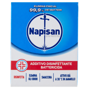 Ogni giorno frequentando ambienti affollati, oppure in presenza di animali, e possibile venire a contatto con i batteri. Un normale detersivo pulisce ma non disinfetta. Per avere capi disinfettati e importante aggiungere Napisan Extra Protection ad ogni lavaggio. Con Napisan Extra Protection si può avere, infatti, la massima igiene sul bucato della famiglia, compreso quello dei bambini e degli anziani. Inoltre, Napisan Extra Protection ha un'efficace azione sbiancante e smacchiante, elimina gli odori e non danneggia i tessuti. Additivo disinfettante battericida - Disinfetta - Azione antibatterica - Elimina gli odori - Smacchia - Attivo già a 30 °C in ammollo Si usa per: Indumenti dei bambini, Asciugamani, Lenzuola, Indumenti sportivi, Biancheria intima Test Microbiologici dimostrano che Napisan Extra Protection disinfetta già a basse temperature e dà quindi la sicurezza di igiene su tutto il bucato. Infatti, a contatto con l'acqua, l'ossigeno attivo di Napisan Extra Protection è in grado di eliminare i batteri presenti nel bucato.