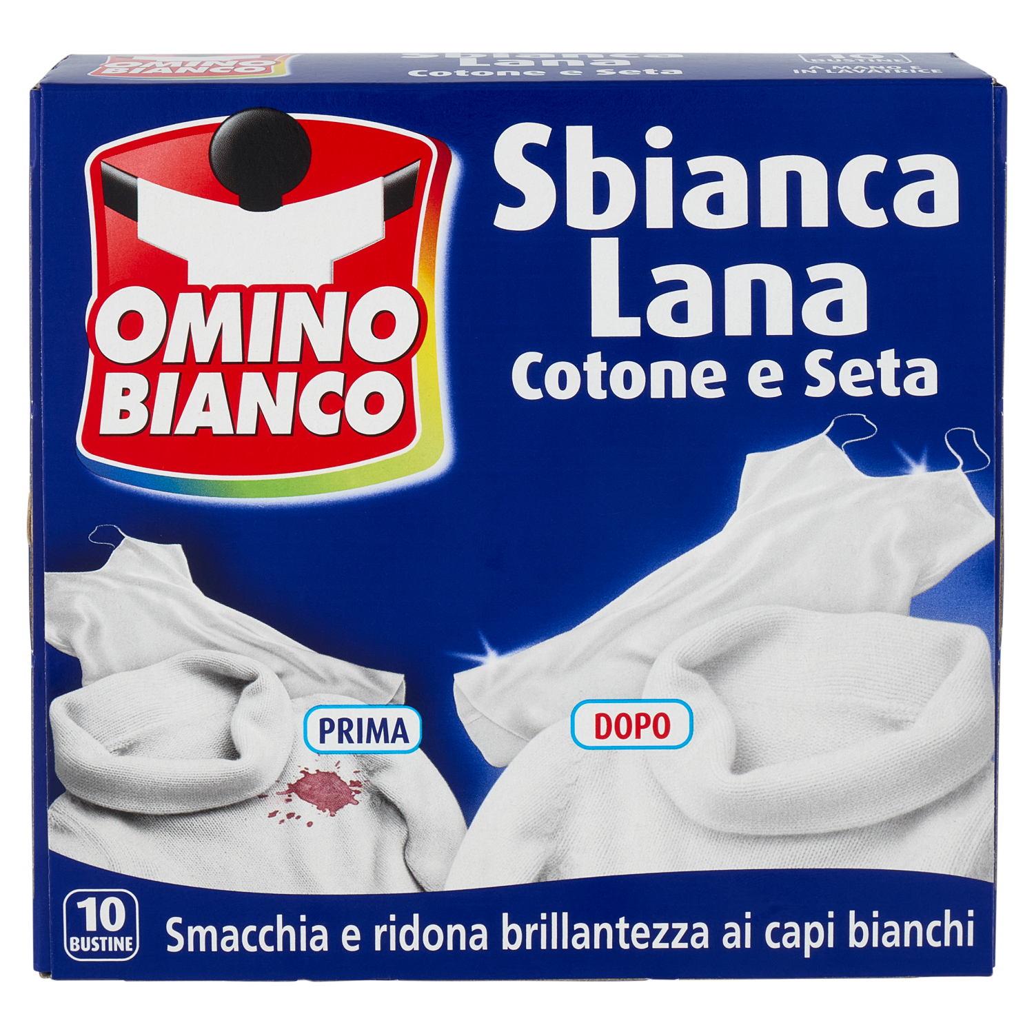 Nuova Formula Sbianca e Smacchia - Sbianca i tessuti riportando al loro candore originale i capi ingialliti e ingrigiti dal tempo. - Smacchia in tutta sicurezza lana, cotone, seta, lino e tutti i tessuti bianchi, anche quelli sintetici. È efficace contro le macchie più difficili come frutta, vino, sugo di pomodoro e grasso. - Rivitalizza e nutre le fibre rispettando la loro elasticità e morbidezza.