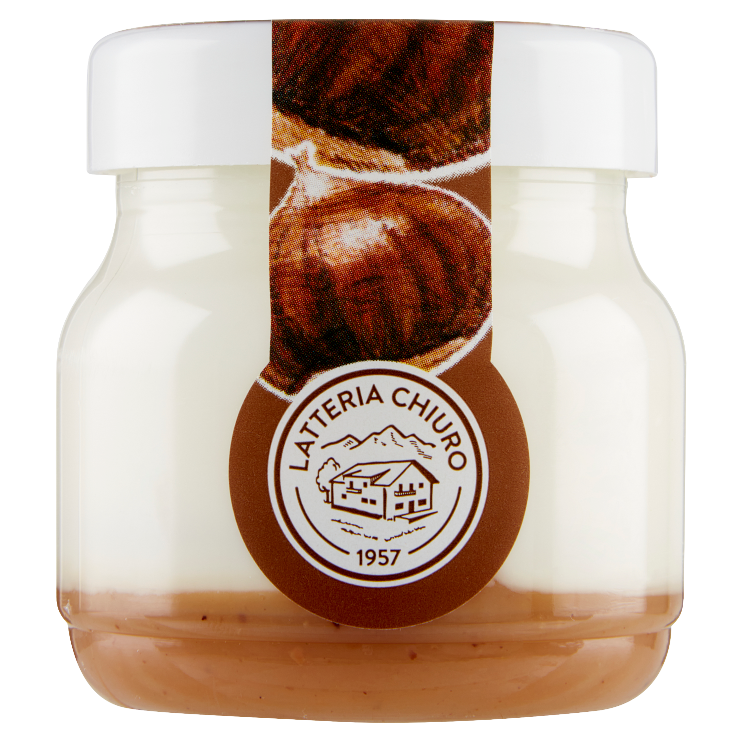 Crema di marroni prodotta in Valtellina 16% (marroni 10% sul prodotto finito, zucchero di canna, gelificante: pectina)