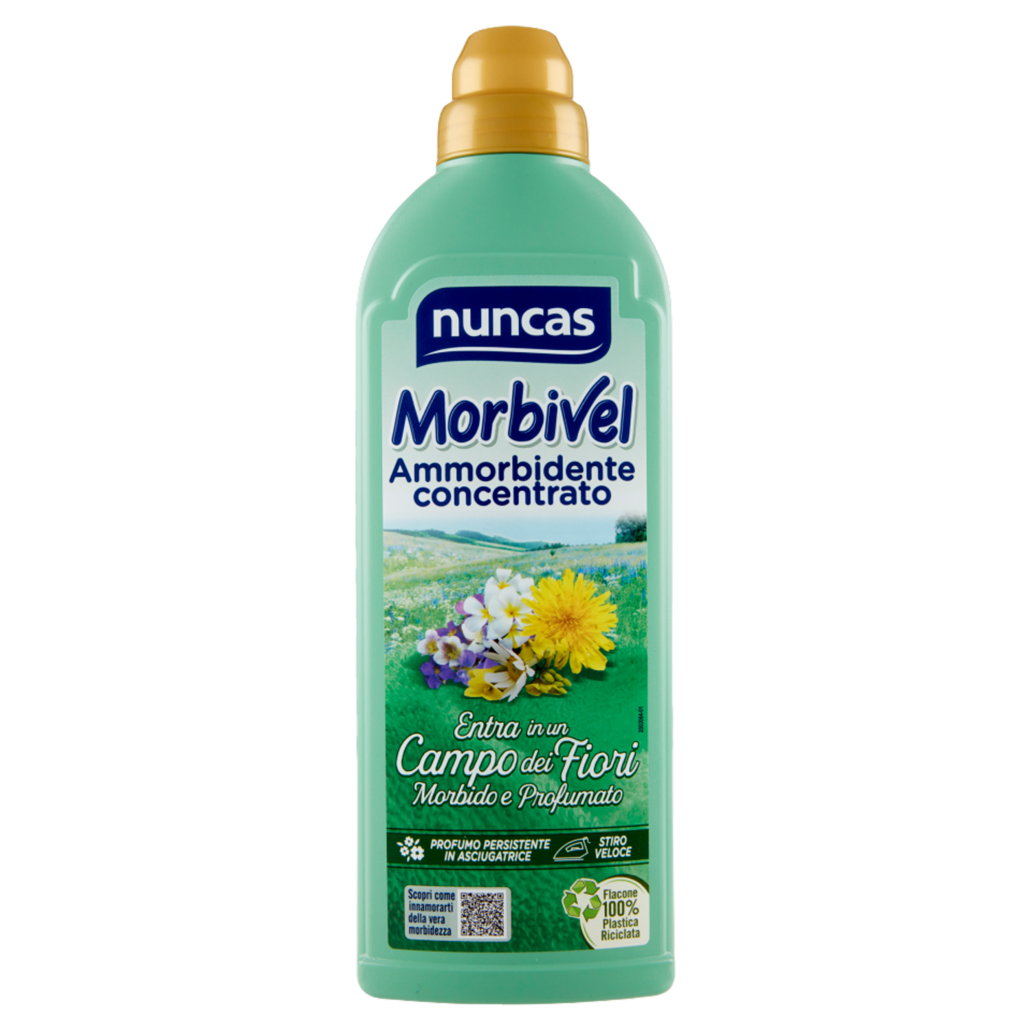 Lasciati trasportare dall'eleganza della violetta, dalla freschezza dei fuori d'arancio e della poesia del legno di sandalo in un incantevole Campo dei Fiori. Morbivel ridona ai capi la vera morbidezza e il soffice volume che hai sempre sognato. Ricco di principi attivi rigeneranti nutre e idrata le fibre in profondità; preserva i capi dall'usura e dall'irrigidimento dovuto al deposito del calcare. Ideale su tutti i tessuti, in particolare su cotone, lino e viscosa, distende le fibre per facilitare la stiratura e consentire un risparmio di tempo ed energie. Il profumo Selezione Nuncas, unico ed esclusivo, rimane nel tempo sui capi e resiste anche al trattamento in asciugatrice, evitando l'odore di umido. Morbivel, inoltre, non lascia residui e contribuisce così a mantenere l'efficienza dell'elettrodomestico. Nuncas green living La plastica è una risorsa importante dalle molteplici virtù (leggerezza, resistenza, longevità) e non deve essere sprecata. Ecco perché questo flacone è realizzato al 100% con plastica riciclata, rigenerata e riutilizzata: per trasformare un rifiuto in una risorsa. Anche l'energia elettrica usata da Nuncas per la realizzazione di questo prodotto proviene solo da fonti rinnovabili certificate, per un uso più sostenibile delle risorse energetiche. Inquadra il QR code per conoscere come smaltire l'imballaggio nel rispetto dell'ambiente.