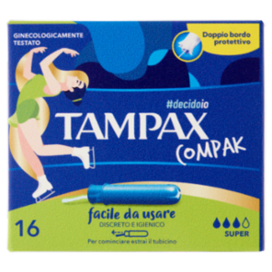Facilità di utilizzo - Applicatore compatto, sicuro e discreto. Protezione - Tampone con macrocanali assorbenti. Sicurezza - Tampone con gonna protettiva. Facile da inserire e Igienico anche fuori casa, grazie al Pratico Applicatore. 1. Estrai il tubicino interno fino al click 2. Inserisci il tubicino esterno 3. Spingi il tubicino interno e rimuovi l'applicatore Per avere maggiori informazioni, leggi le istruzioni per l'uso all'interno della confezione o consulta i tutorial della sezione "come si usa" sul sito tampax.it Puoi indossare Tampax anche: Con il costume - Sicuro e discreto anche in acqua. Se sei molto giovane - Puoi usarlo anche prima... della prima volta! Quando fai sport - Libera di muoverti come vuoi, sempre. In tutte le occasioni - Pronto all'uso e igienico anche fuori casa.