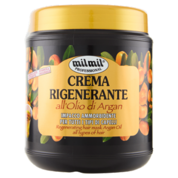 Azione: la formula originale della Crema Rigenerante mil mil Professional consente di stendere il prodotto creando un vero impacco sui capelli. La sua ricca composizione con Olio di Argan, svolge un'azione rivitalizzante sui capelli, agendo dalle radici alle punte, aiutando a proteggerli dallo stress causato dagli agenti atmosferici e smog; troveranno la loro naturale morbidezza e brillantezza. La sua formula è indicata per Tutti i Tipi di Capelli.