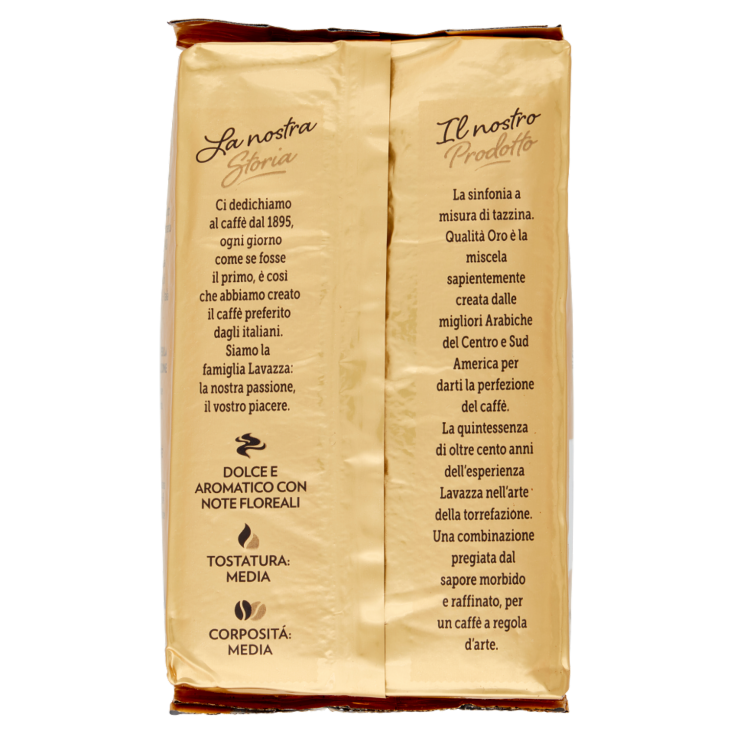 Qualità Oro Dal 1956 Il nostro Prodotto La sinfonia a misura di tazzina. Qualità Oro è la miscela sapientemente creata dalle migliori Arabiche del Centro e Sud America per darti la perfezione del caffè. La quintessenza di oltre cento anni dell'esperienza Lavazza nell'arte della torrefazione. Una combinazione pregiata dal sapore morbido e raffinato, per un caffè a regola d'arte. Dolce e aromatico con note floreali Tostatura: media Corpositá: media