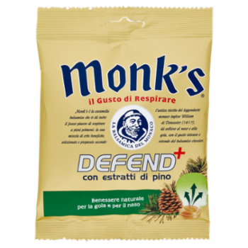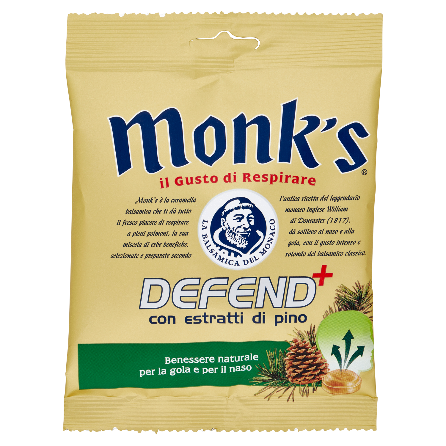 Monk's il Gusto di Respirare La balsamica del monaco Monk's è la caramella balsamica che ti dà tutto il fresco piacere di respirare a pieni polmoni: la sua miscela di erbe benefiche, selezionate e preparate secondo l'antica ricetta del leggendario monaco inglese William di Doncaster (1817), dà sollievo al naso e alla gola, con il gusto intenso e rotondo del balsamico classico.