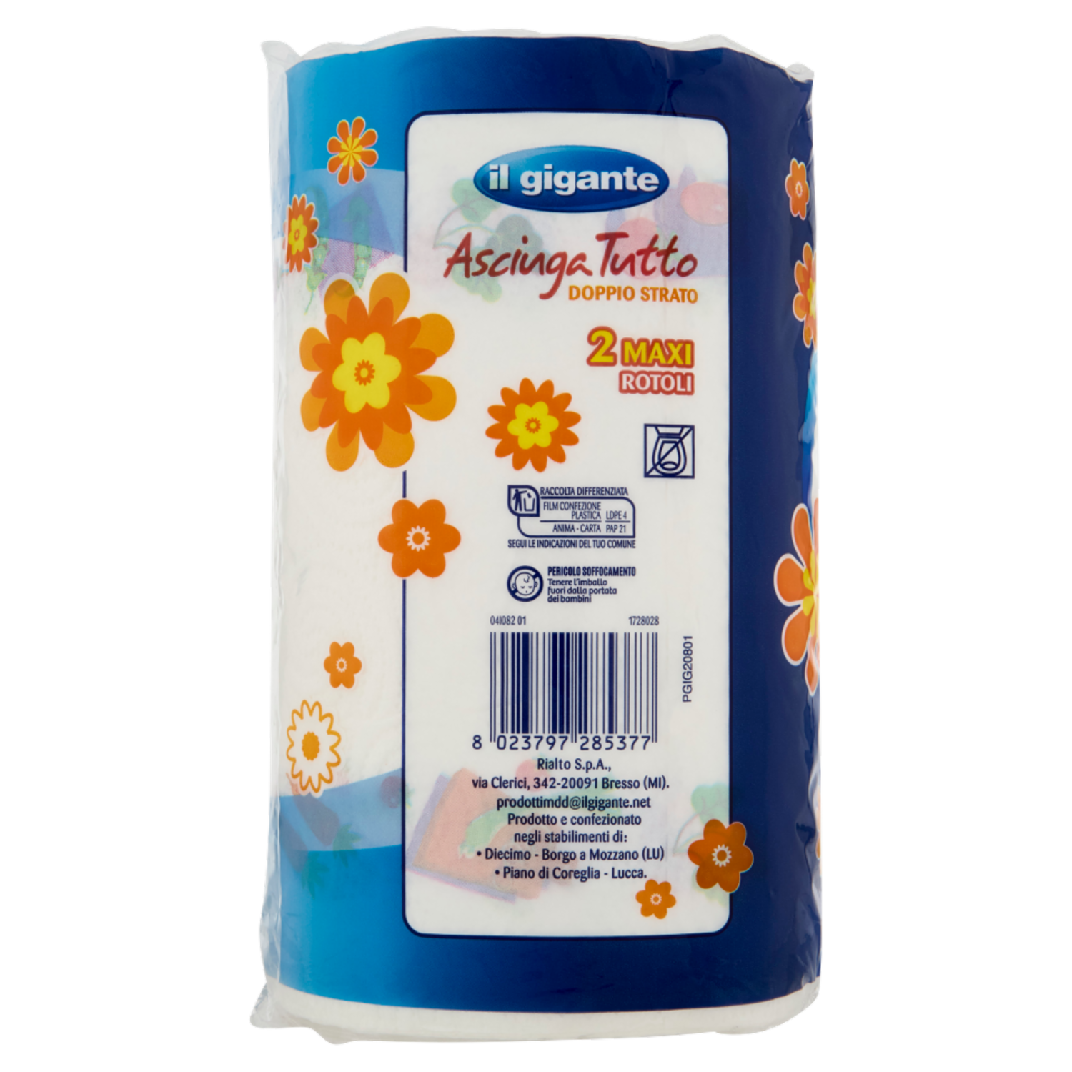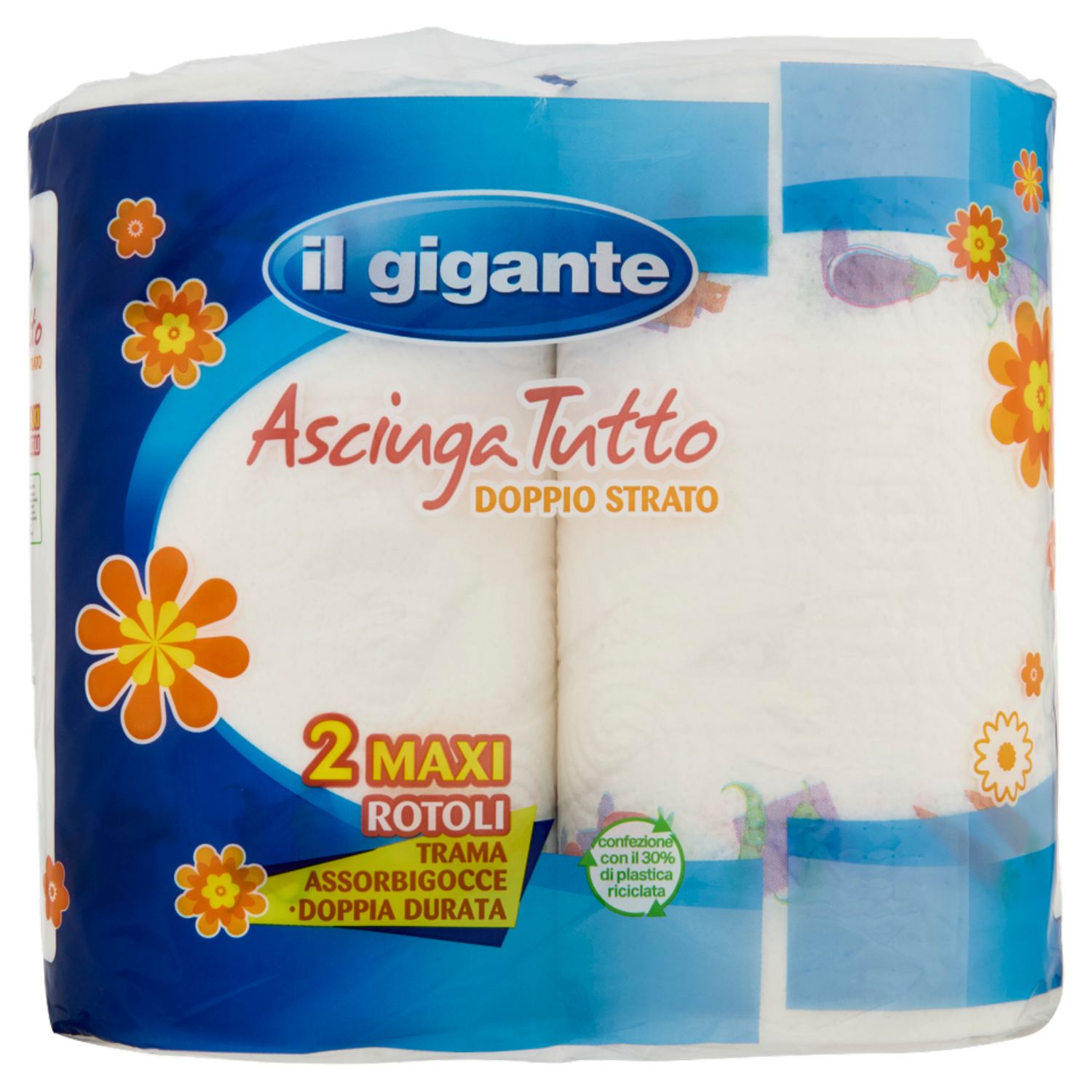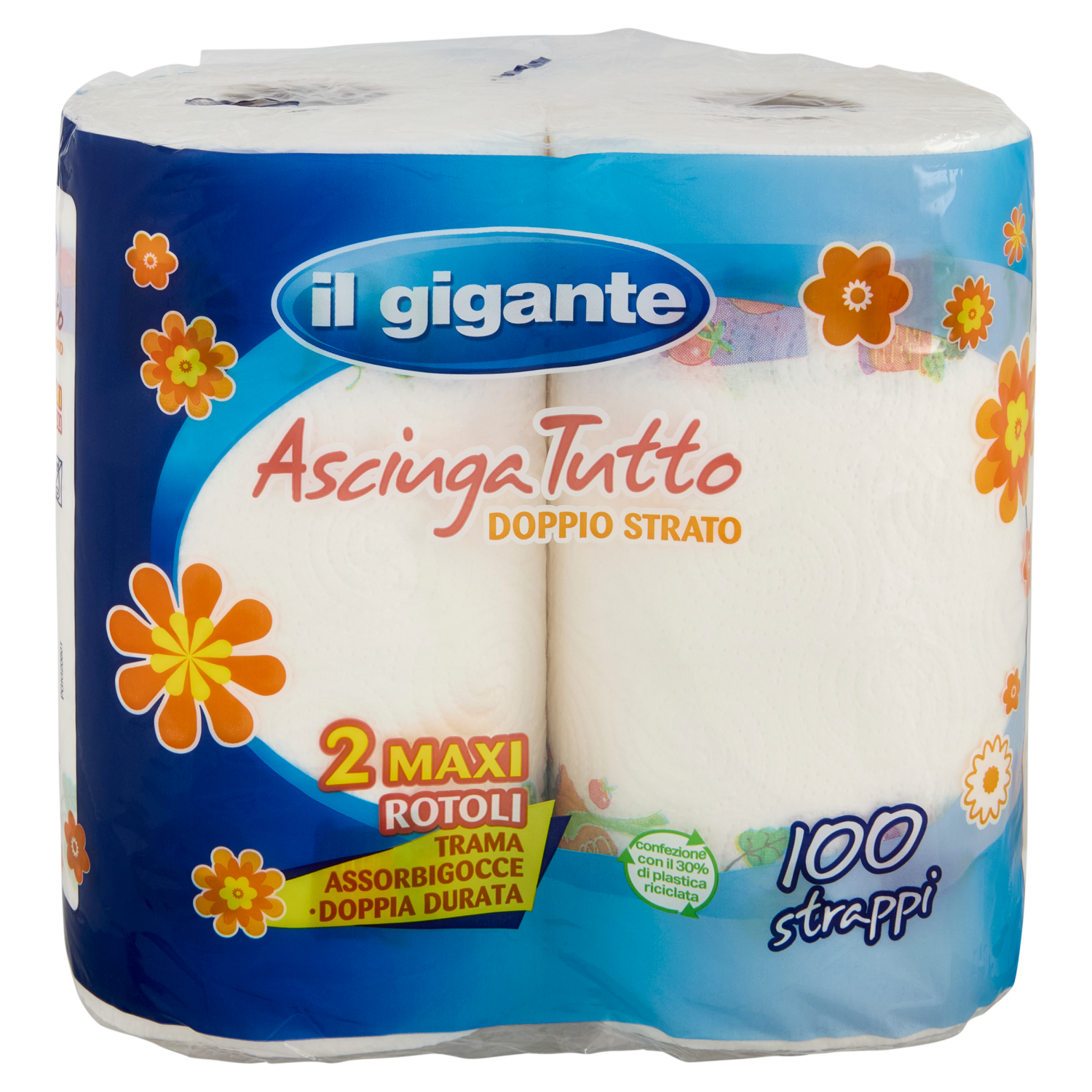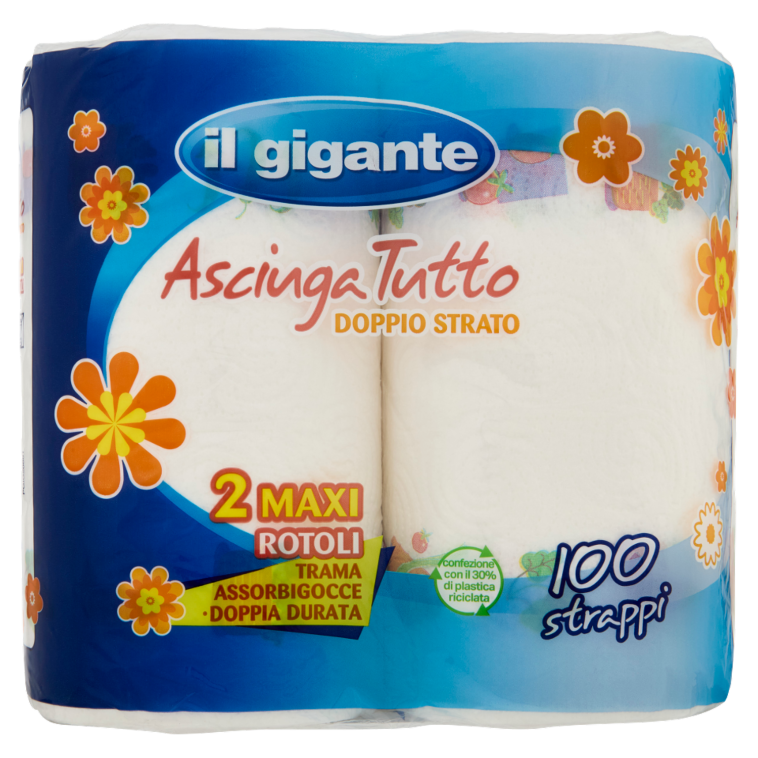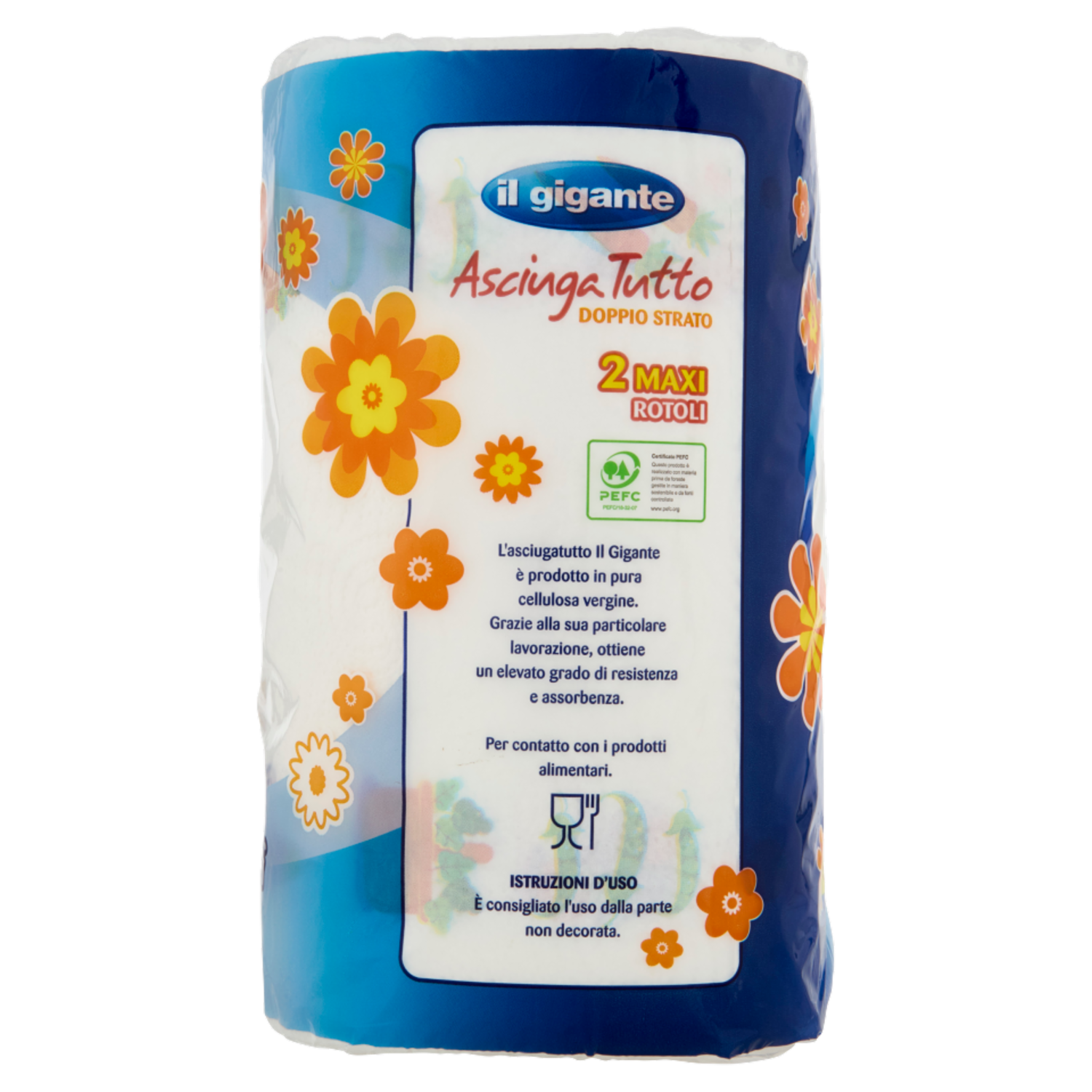 L'asciugatutto Il Gigante è prodotto in pura cellulosa vergine. Grazie alla sua particolare lavorazione, ottiene un elevato grado di resistenza e assorbenza.