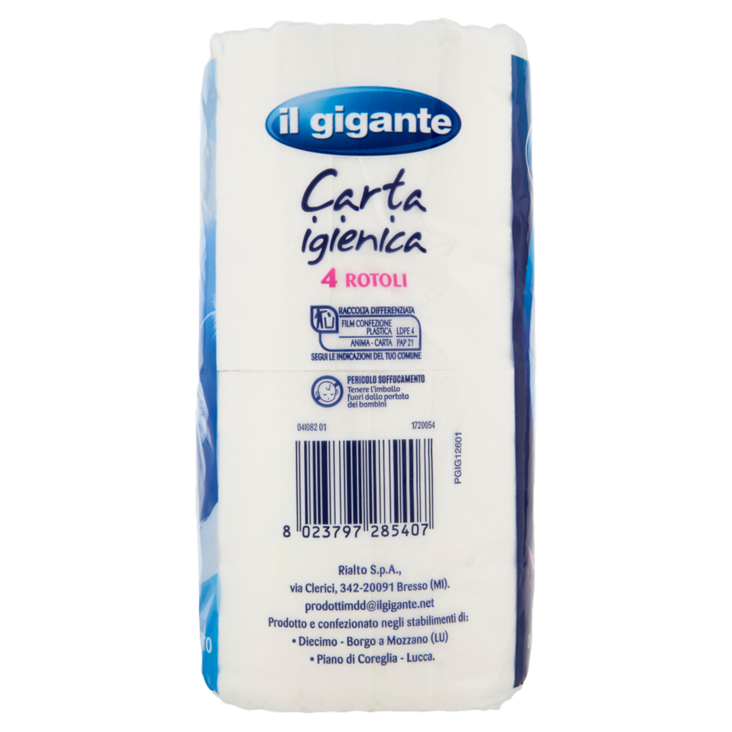 La Carta Igienica Il Gigante è realizzata utilizzando esclusivamente pura cellulosa vergine. La particolare miscela di fibre le conferisce sofficità e resistenza.