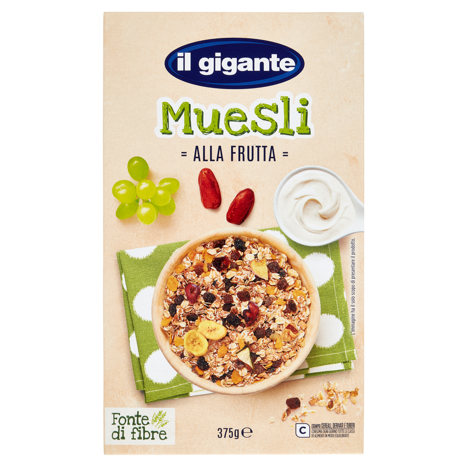 Modalità di preparazione Il Muesli alla Frutta Il Gigante è ideale per la tua colazione: unisci 3 o 4 cucchiai di Muesli al latte freddo o caldo o allo yogurt per apprezzare la croccantezza dei cereali.