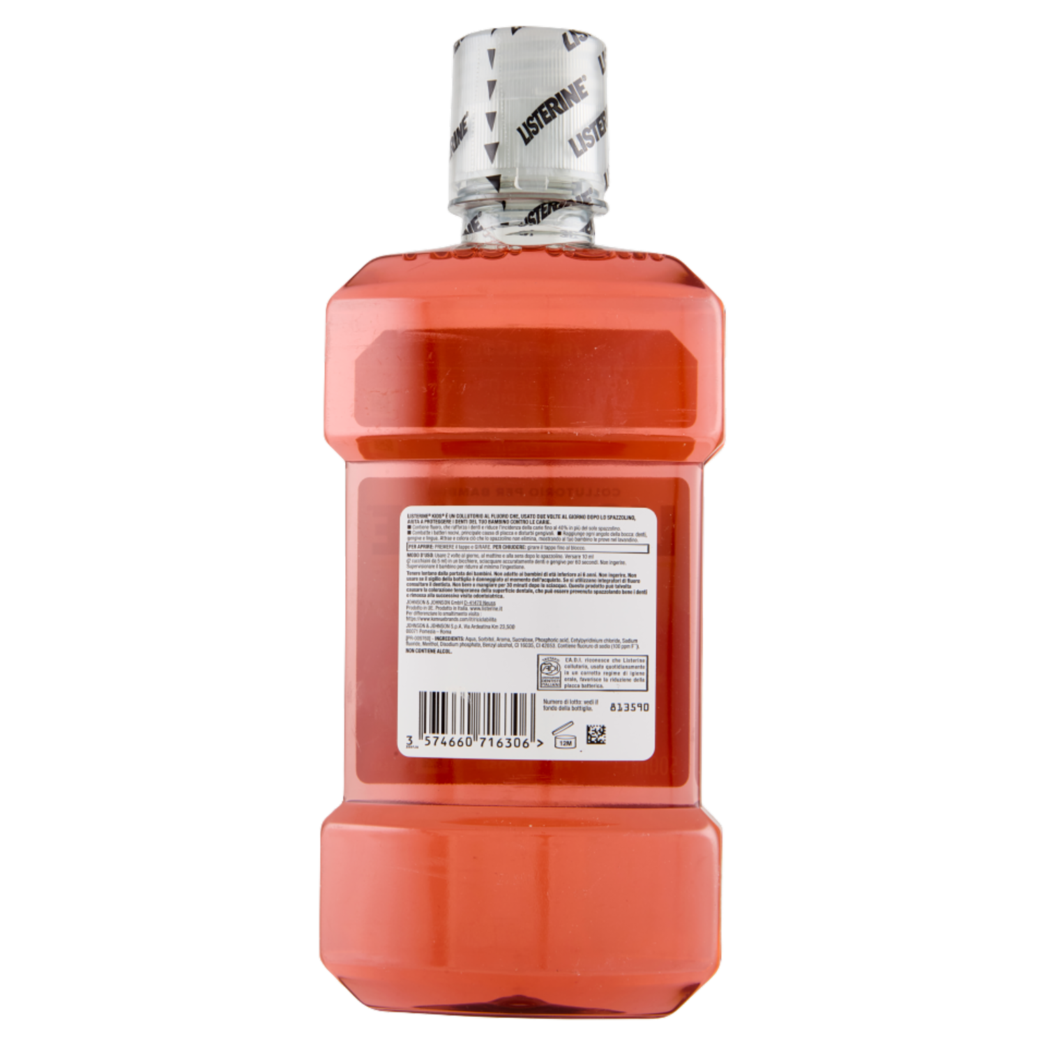 Listerine Smart Rinse è un collutorio al fluoro che, usato due volte al giorno dopo lo spazzolino, aiuta a proteggere i denti del tuo bambino contro le carie. - Contiene fluoro, che rafforza i denti e riduce l'incidenza della carie fino al 40% in più del solo spazzolino. - Combatte i batteri nocivi, principale causa di placca e disturbi gengivali. - Raggiunge ogni angolo della bocca: denti, gengive e lingua. Attrae e colora ciò che lo spazzolino non elimina, mostrando al tuo bambino le prove nel lavandino. Non Contiene Alcol.