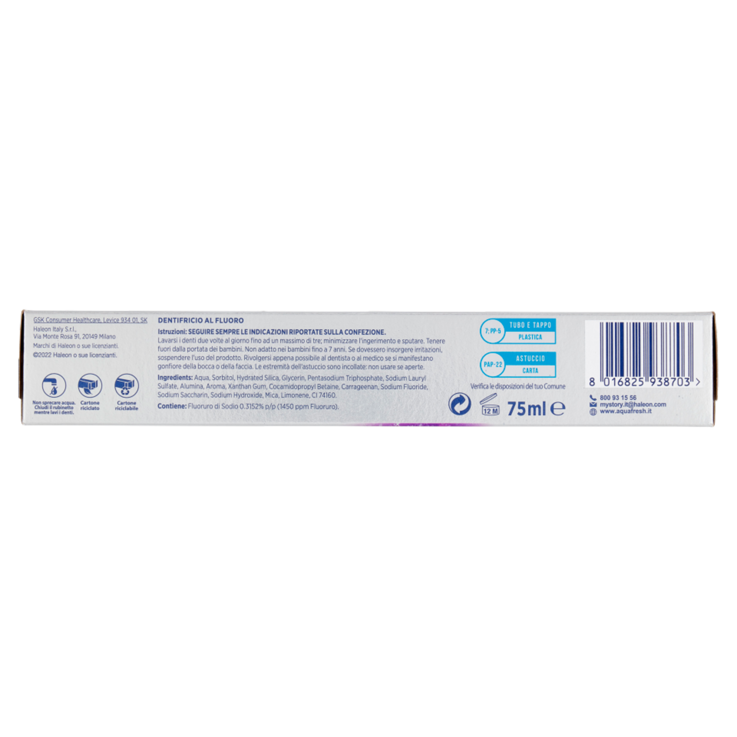 800 93 15 56 mystory.it@haleon.com www.aquafresh.it Haleon Italy S.r.l. Via Monte Rosa 91 20149 Milano