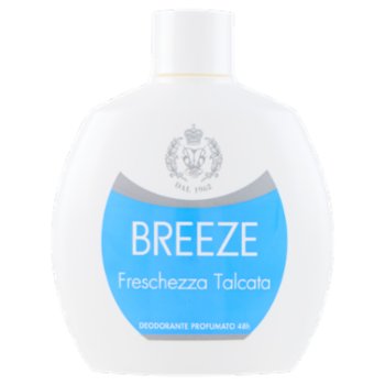 Breeze Freschezza Talcata garantisce un'efficace azione deodorante fino a 48h. Regala freschezza e protezione. È formulato Senza Gas e Senza Sali di Alluminio. Non interferisce con il normale processo di traspirazione della pelle, lasciandola "libera" di respirare. La formula è trasparente e aiuta a ridurre la formazione di residui bianchi sui tessuti. Fragranza: note talcate, iris e musk. Dermatologicamente testato