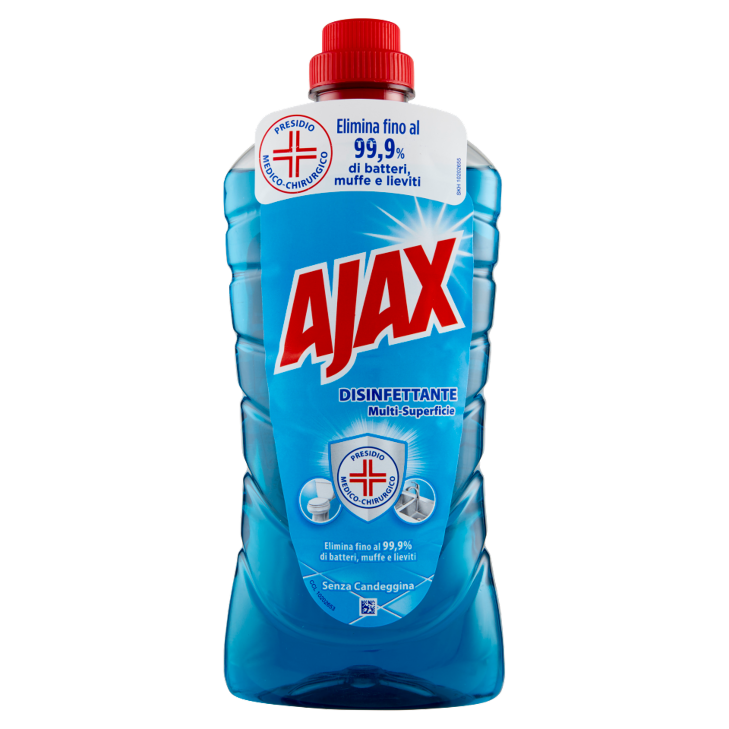 Ajax Disinfettante 2 in 1: Azione disinfettante e pulizia profonda Elimina fino al 99,9% di muffe, lieviti e batteri, inclusa Salmonella Elimina facilmente il grasso per superfici brillanti Senza candeggina, lascia una gradevole freschezza Flacone in plastica 100% riciclata Prodotto responsabilmente* * per ulteriori informazioni www.colgatepalmolive.com/responsibly-made