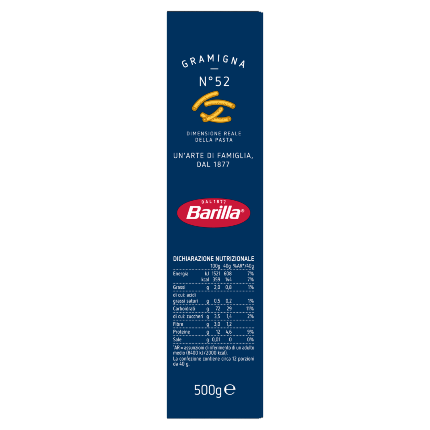 Barilla Dal 1877 Grani selezionati 100% italiani Siamo fieri di essere al fianco delle organizzazioni di 8.000 agricoltori d'Italia che coltivano grano duro di qualità per la nostra pasta. A Parma dal 1877 A Parma il buon cibo è tradizione ed eccellenza gastronomica, gioia di vivere e cultura: qui è dove siamo nati. Il domani è oggi La pasta Barilla la conosci da sempre: perciò abbiamo tolto la finestra trasparente, risparmiando 126.000 kg di plastica all'anno.* Un gesto d'amore Ogni giorno ci impegniamo a darti la nostra pasta migliore, sempre al dente, per far felice chi ami. *rimozione finestra dai Classici Barilla; valore calcolato sulle confezioni in cartoncino vendute nel 2020. Scopri di più su barilla.com/box. Per noi la qualità è una tradizione di famiglia dal 1877. www.barilla.it