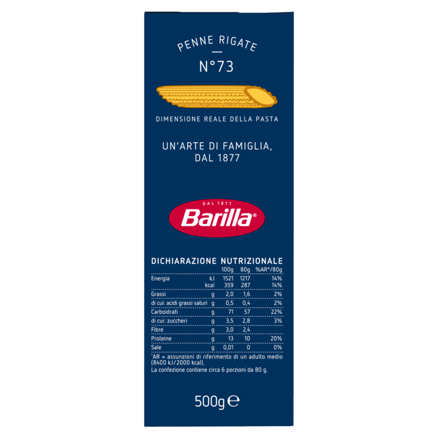 Barilla Dal 1877 Grani selezionati 100% italiani Siamo fieri di essere al fianco delle organizzazioni di 8.000 agricoltori d'Italia che coltivano grano duro di qualità per la nostra pasta. A Parma dal 1877 A Parma il buon cibo è tradizione ed eccellenza gastronomica, gioia di vivere e cultura: qui è dove siamo nati. Il domani è oggi La pasta Barilla la conosci da sempre: perciò abbiamo tolto la finestra trasparente, risparmiando 126.000 kg di plastica all'anno.* Un gesto d'amore Ogni giorno ci impegniamo a darti la nostra pasta migliore, sempre al dente, per far felice chi ami. *rimozione finestra dai Classici Barilla; valore calcolato sulle confezioni in cartoncino vendute nel 2020. Scopri di più su barilla.com/box. Per noi la qualità è una tradizione di famiglia dal 1877. www.barilla.it