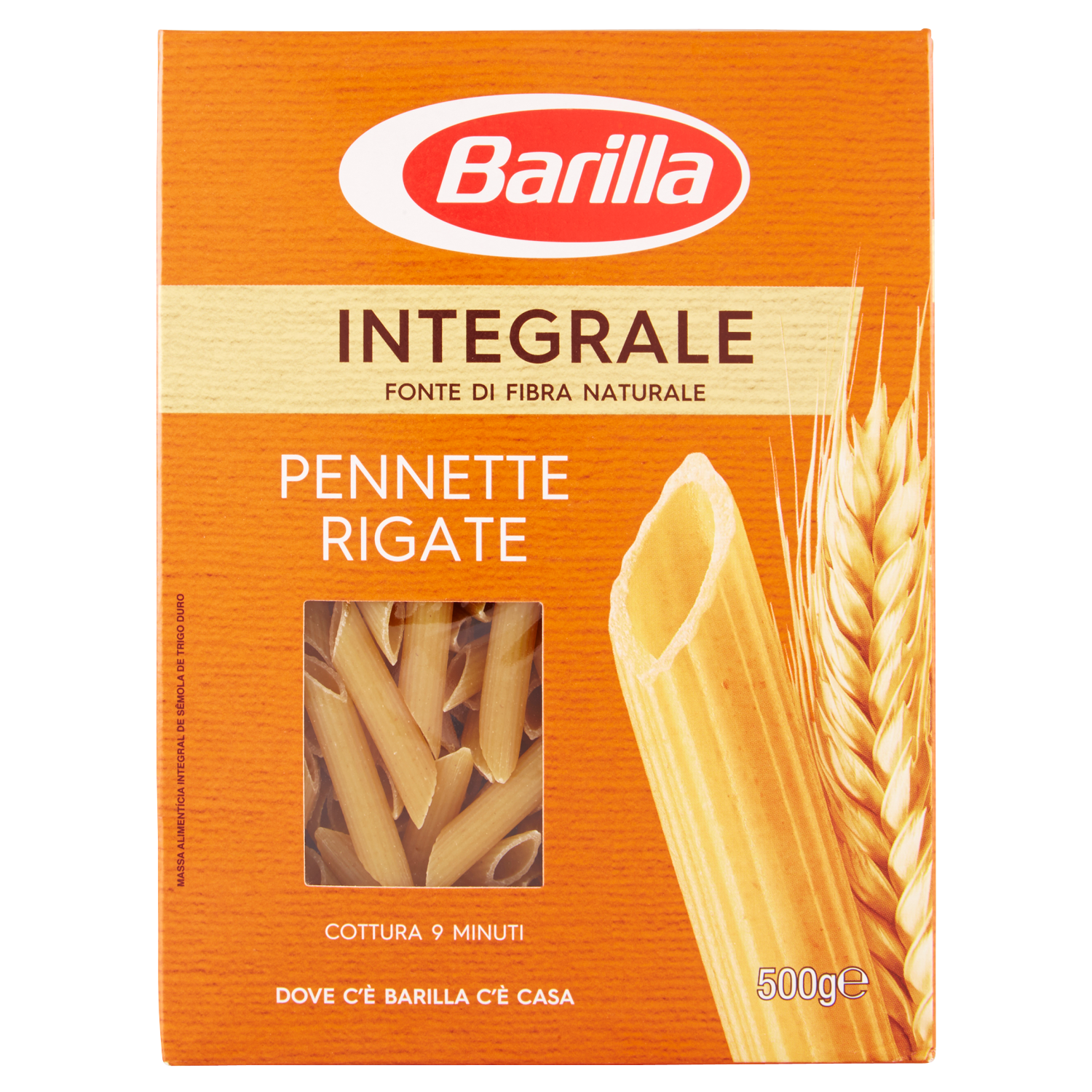 Pennette Rigate Barilla: Bontà Integrale Tutta la bontà della pasta Barilla con il benessere delle fibre. Una porzione di pasta Barilla Integrale (85g) fornisce infatti più del 20% del tuo fabbisogno giornaliero di fibre. L'inconfondibile colore dorato è frutto della semola integrale ottenuta con l'esclusivo metodo di macinazione Barilla e la sua perfetta consistenza è studiata per portare in tavola ogni giorno il massimo del gusto. Buon Appetito! Scopri di più su www.barilla.com