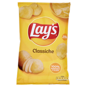 Scopri il gusto irresistibile di Lay's Classiche, patate tagliate a fettine sottili, preparate con cura e condite deliziosamente. 100% Ingredienti di Qualità - Senza coloranti artificiali - Senza conservanti - Senza esaltatori di sapidità aggiunti