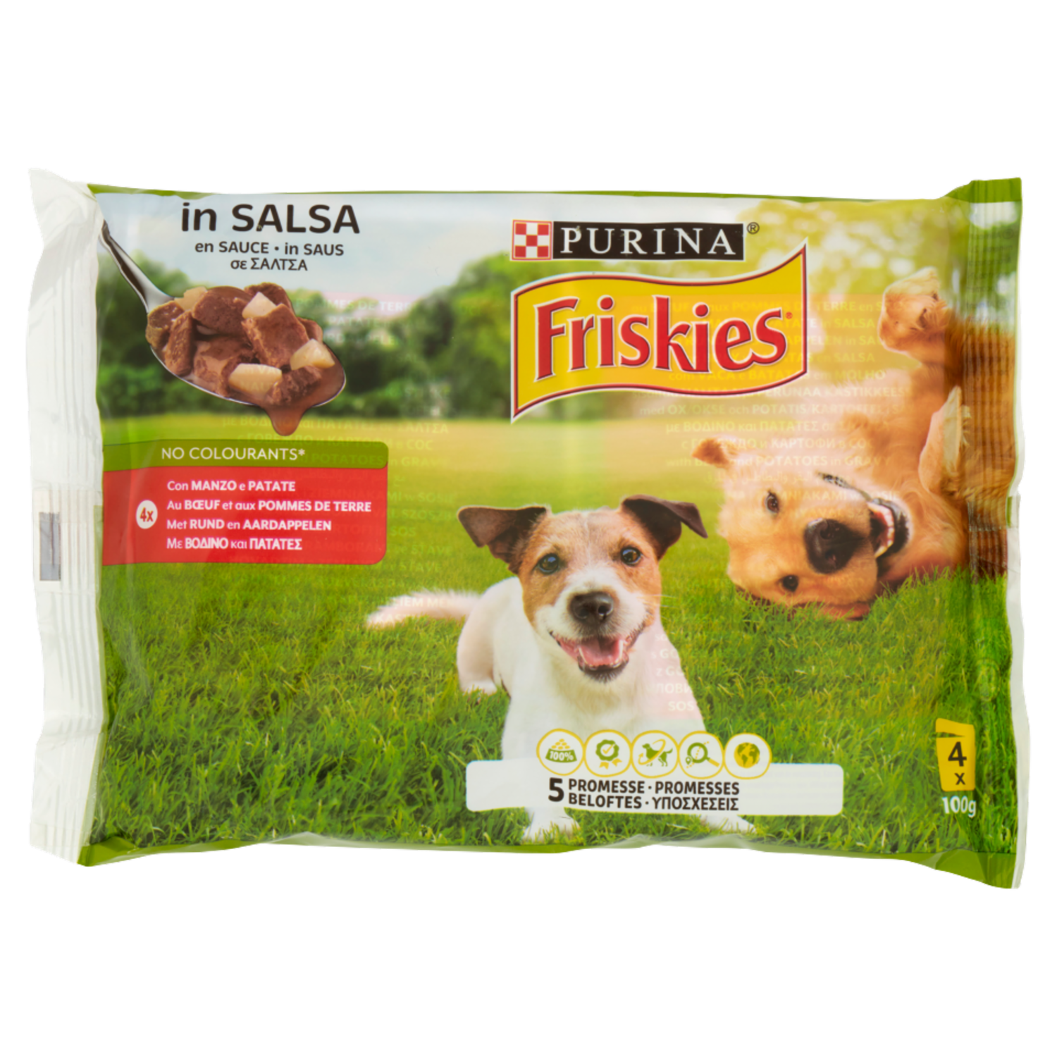 - No colourants* - 4x Con Manzo e Patate - 5 Promesse - 4 x 100g - *Senza l'aggiunta di coloranti, aromatizzanti e conservanti artificiali