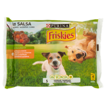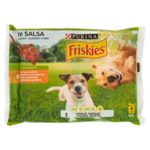 Prova il mix!* 24 Peso del cane: 5kg | Buste: x 5 | Buste + Secco : x2+75g* Peso del cane: 10kg | Buste: x9 | Buste + Secco : x4+105g* Peso del cane: 25kg | Buste: x 16 | Buste + Secco : x7+200g* *Calcolato su PURINA FRISKIES Balance. Queste quantità sono calcolate per un cane moderatamente attivo e a temperature ambientali normali. I bisogni individuali variano e le razioni dovrebbero essere adattate di conseguenza. Lasciare sempre a disposizione acqua pulita e fresca.