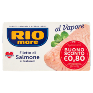 Prova il gusto delicato del Filetto di Salmone Rio Mare al Naturale: un filetto di Salmone di prima qualità (Salmo Salar), integro, tenero e senza lische, cotto al vapore. Gustoso e nutriente, il Filetto di Salmone Rio Mare è ricco di proteine nobili e di omega 3 (EPA+DHA), acidi grassi essenziali che con 250 mg al giorno contribuiscono alla normale funzione cardiaca in un'alimentazione varia ed equilibrata. Ricco di: proteine, vitamina D, niacina, selenio, acidi grassi omega 3. Fonte di: vitamina E, vitamina B12.