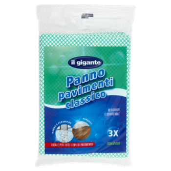 Il Panno Pavimenti Sintetico Il Gigante è resistente e allo stesso tempo adatto anche alle superfici delicate come i parquets. Può essere utilizzato con acqua o con qualsiasi detergente.