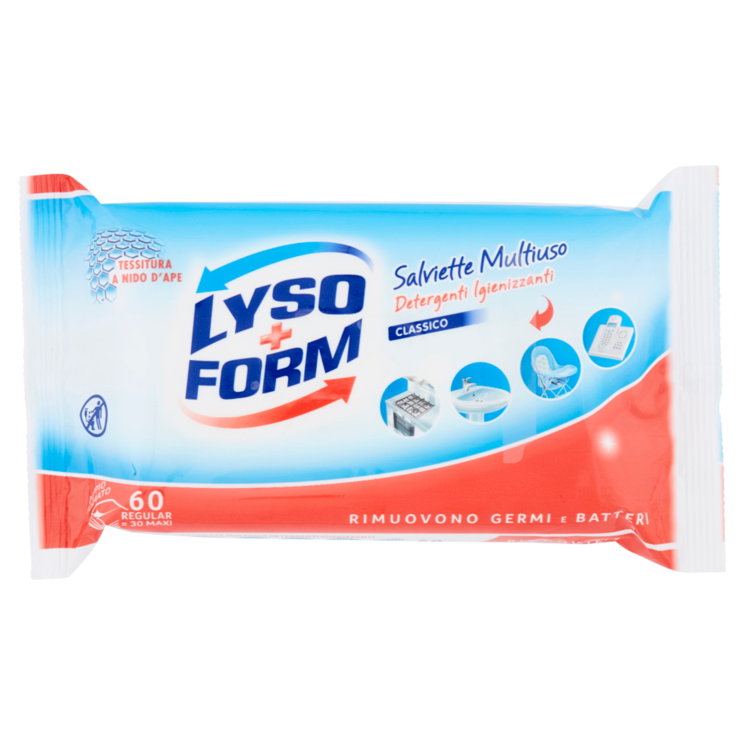 Rimuovono germi e batteri lasciando un fresco profumo Grazie alla tessitura a nido d'ape, le salviette Lysoform eliminano rapidamente lo sporco igienizzando le superfici. Infatti, le salviette Lysoform rimuovono germi e batteri assicurando pulizia e igiene, senza bisogno di extra risciacquo. Indispensabili per la pulizia quotidiana dentro e fuori casa! Indicato per: - Lavandini - Fornelli da cucina - Telefono in plastica - Fasciatoi