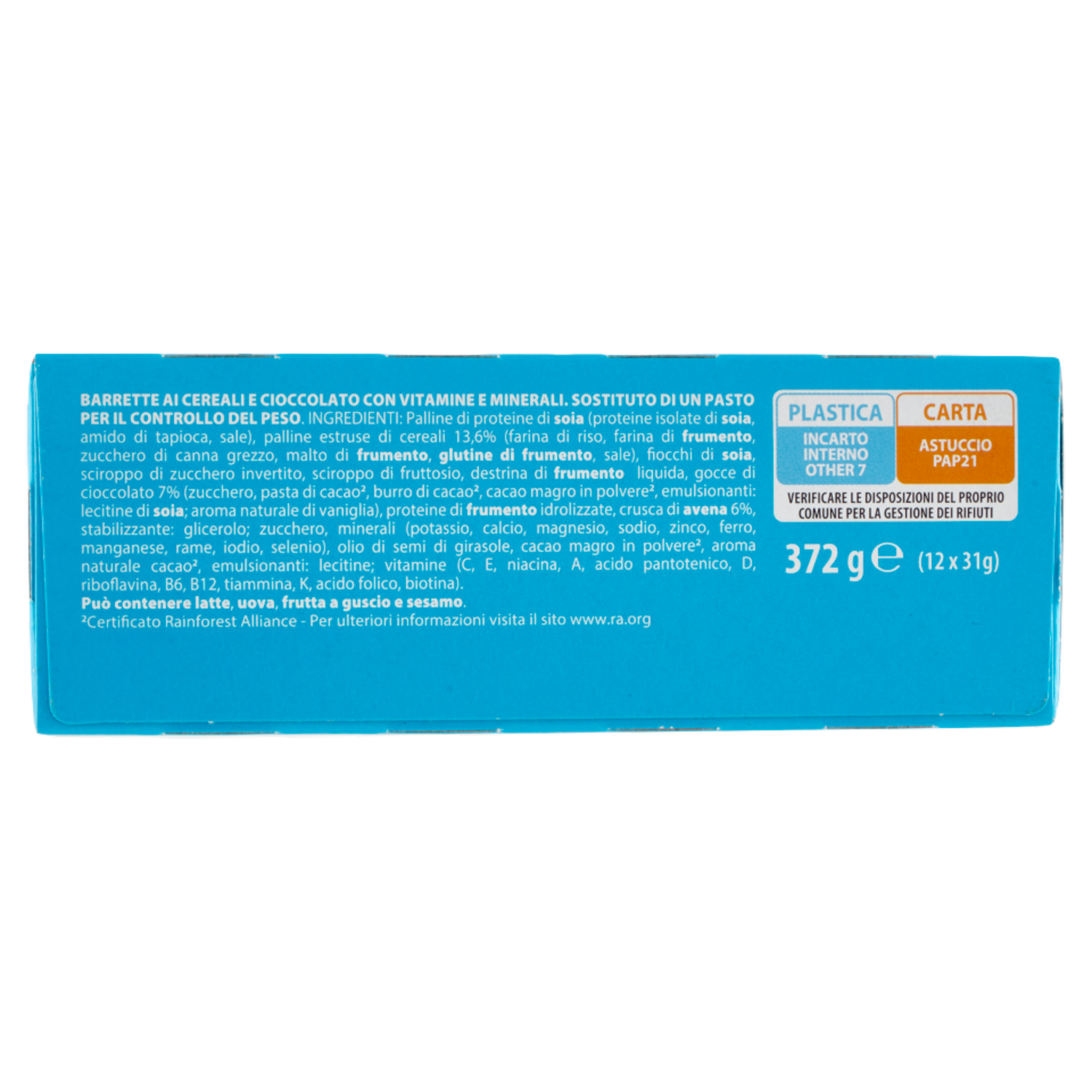 Barrette ai cereali e cioccolato con vitamine e minerali. Sostituto di un pasto per il controllo del peso