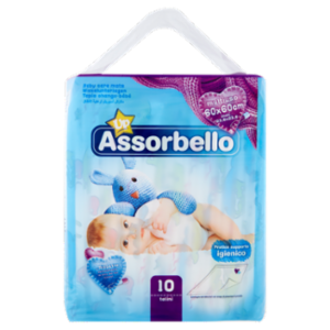 Ad ogni cambio usa le Salviettine Assorbello. Assorbello ti offre anche una linea completa di pannolini per il tuo bambino. Scegli la taglia più adatta in base al suo peso. mini 3-6 kg - 2 midi 4-9 kg - 3 maxi 7-18 kg - 4 junior 11-25 kg - 5 extra large 15-30 kg - 6