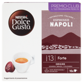 Ispirato a Napoli, dove l'arte e la storia danno vita ad un gran caffè A Napoli il caffè è una passione iniziata nel 18esimo secolo. Ispirato dalle migliori caffetterie napoletane, abbiamo creato questo espresso ricco e potente. Assapora la sua crema densa e scura e il suo corpo ricco che rivela note avvolgenti, forti e tostate. Prova tutta la nostra gamma di espressi di ispirazione italiana Scopri di più su dolce-gusto.it - Ispirazione italiana - Intensity 13 - Forte - Origins - Uganda | Brazil | Colombia - 100% Responsibly sourced - 16x Tazze - 100% Approvvigionato responsabilmente