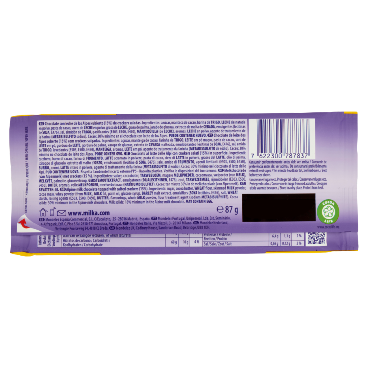 Milka Tuc Sandwich, tavoletta di cioccolato al latte 100% Alpino con Tuc Cracker - 87g