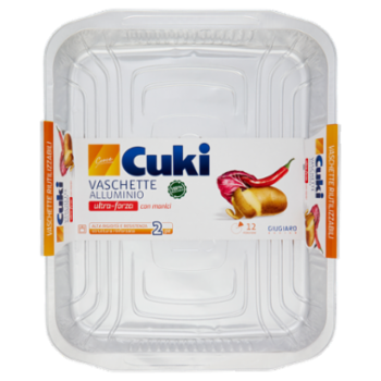 Perché ultra-forza Più rigide, più lisce, più resistenti, e con un nuovo design che le rende uniche: Cuki Vaschette Alluminio Ultra-Forza con manici ideate da Giugiaro Design sono il partner perfetto per la tua creatività in cucina. L'innovativo processo di produzione e la nuova struttura a spessore maggiorato, disegnata per essere rigida e resistente, le garantiscono ancora più consistenza e funzionalità; è inoltre dotata di ergonomiche maniglie per una presa sempre sicura in ogni situazione. Potrai così contare su una cottura sempre ottimale, veloce e omogenea, sfruttando al massimo le qualità del prodotto. Una gamma completa e versatile Le Vaschette Cuki Alluminio ti offrono una soluzione per ogni tua necessità. Puoi scegliere fra moltissime forme e dimensioni: rotonde, rettangolari, per tante porzioni o piccole quantità. Una gamma ampia e completa di strumenti perfetti per la cottura e il riscaldamento del forno e nel microonde, ma anche come piatti da portata per servire a tavola. E per la conservazione in frigo o freezer, scopri la pratica versione con coperchio. Visita il sito www.cuki.it