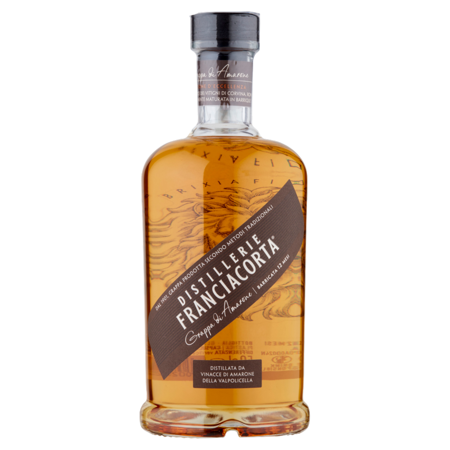Grappa di Amarone Selezione d'eccellenza Distillata da vinacce dei vitigni di Corvina, Rondinella e Molinara, sapientemente maturata in barrique di rovere.
