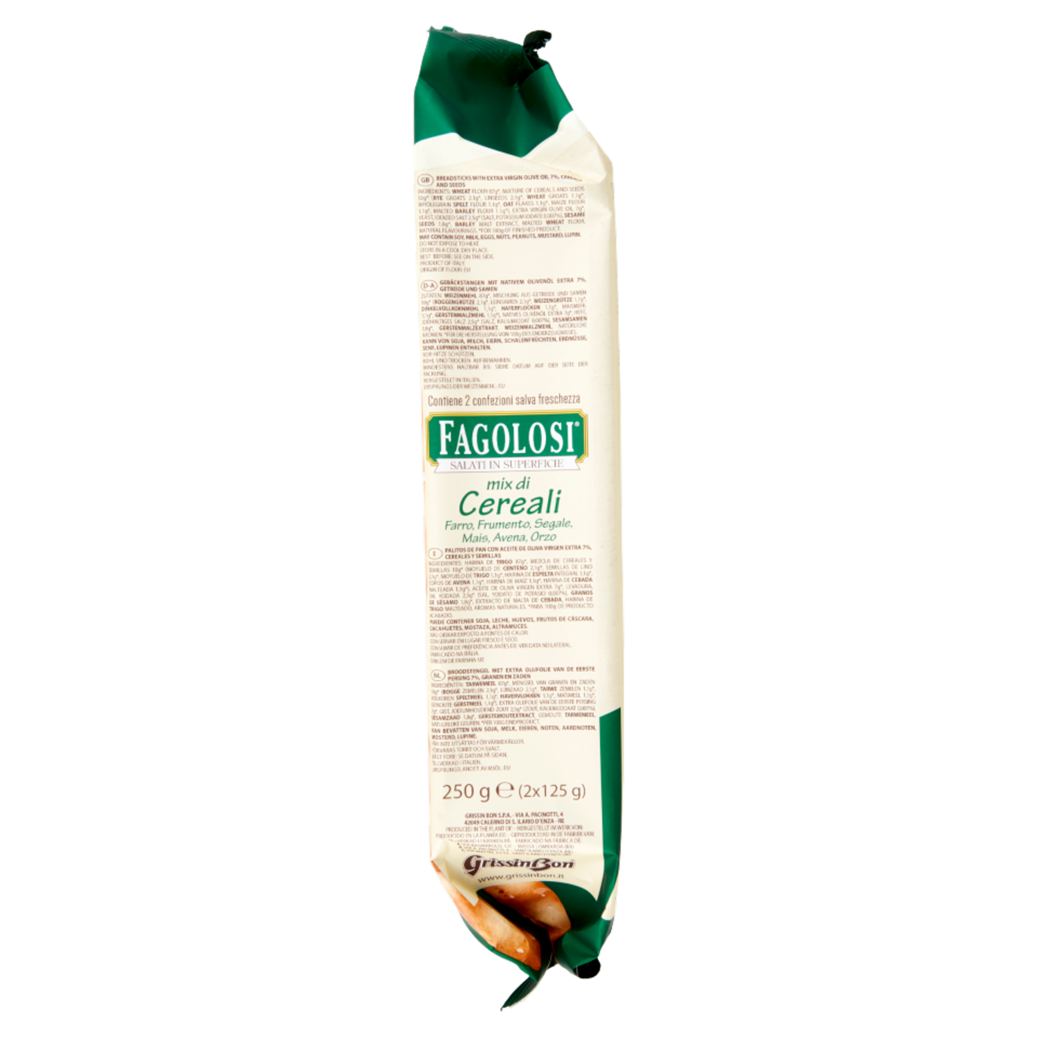 Ideali per un aperitivo sfizioso, ottimi per dare un tocco di gusto all'antipasto, i Fagolosi sono molto più che semplici grissini. Il loro gusto inconfondibile è ottenuto grazie alla scrupolosa selezione degli ingredienti, a un'accurata lavorazione e a un processo di cottura appositamente studiato. Prova la friabilità e la croccantezza dei Fagolosi in tutte le sue varianti Classici - Cereali - Kamut Marchio di Grano Khorasan - Rosmarino - Sesamo - Cipolla - Olive Nere Lo iodio contribuisce alla normale produzione di ormoni della tiroide e alla normale funzione tiroidea. Si raccomanda di seguire sempre una dieta varia ed equilibrata e uno stile di vita sano. Per ottenere l'effetto indicato è necessario consumare almeno 29g di prodotto al giorno, pari a circa 5 grissini.