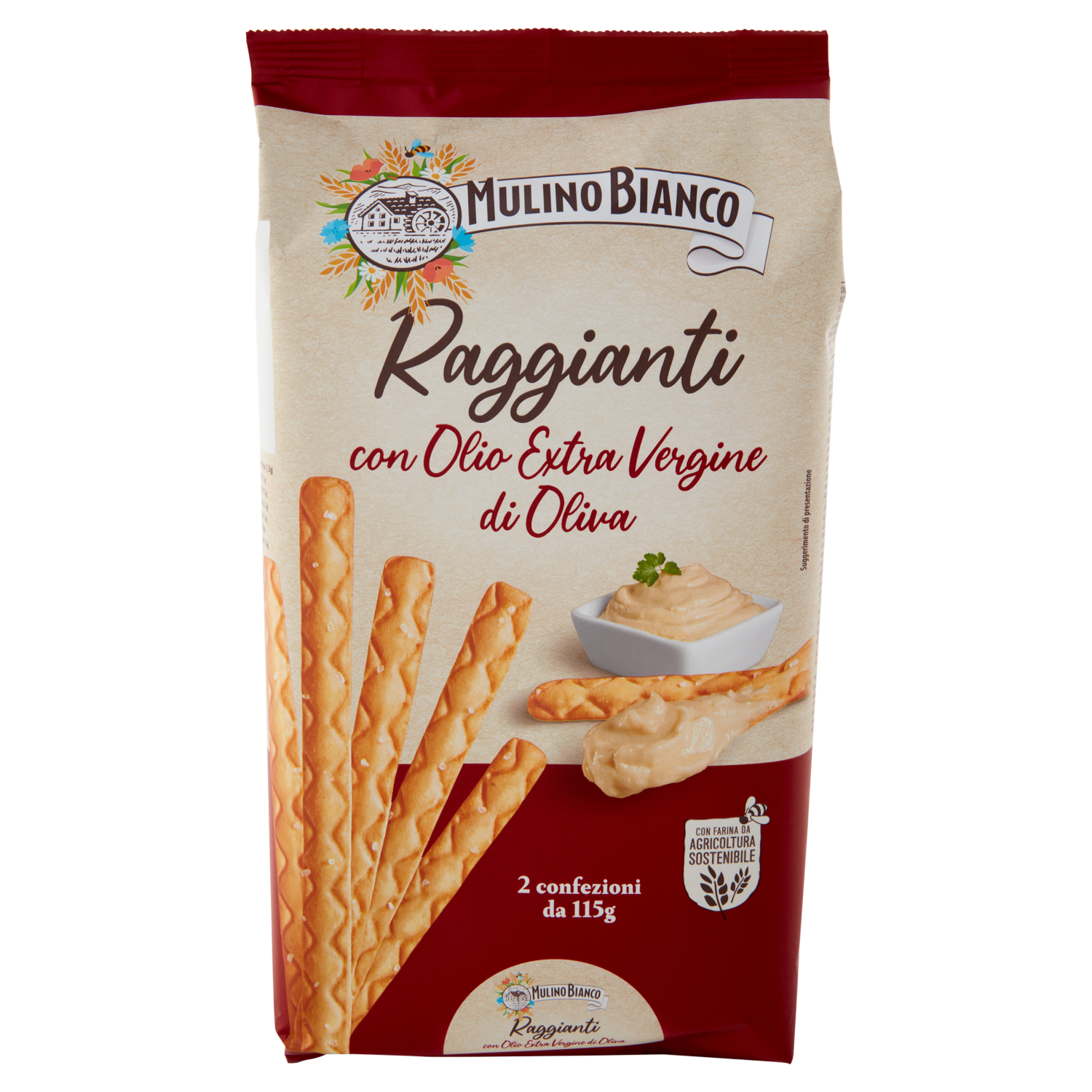 La Carta del Mulino Tutti i Raggianti di questa confezione contengono farina di grano tenero ottenuta nel rispetto della Carta del Mulino, il disciplinare di coltivazione sostenibile redatto insieme al WWF che porta qualità nei prodotti, supporta il lavoro della comunità di agricoltori e protegge la biodiversità favorendo anche gli insetti impollinatori. Con farina da agricoltura sostenibile La Carta del Mulino prevede il rispetto dei criteri di sostenibilità ISCC Plus ed è stata scritta insieme al WWF e al Dipartimento di Scienze e Tecnologie Agro-Alimentari dell'Alma Mater Studiorum - Università di Bologna. Scopri di più su mulinobianco.it/lacartadelmulino