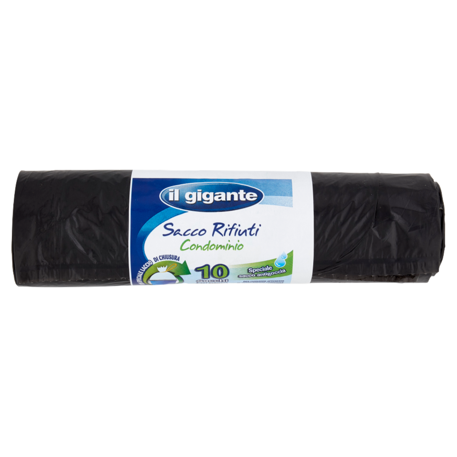 Speciale sacco a tenuta antigoccia studiato per la raccolta differenziata e dotato di uno speciale laccio di chiusura.