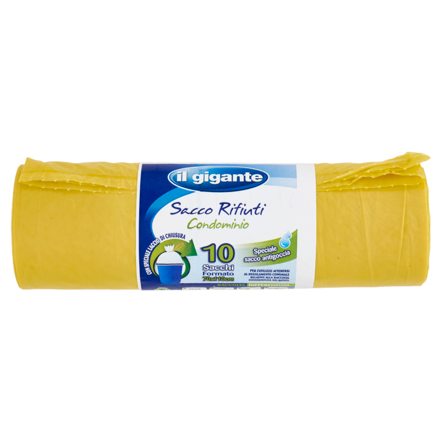 Speciale sacco a tenuta antigoccia studiato per la raccolta differenziata e dotato di uno speciale laccio di chiusura.